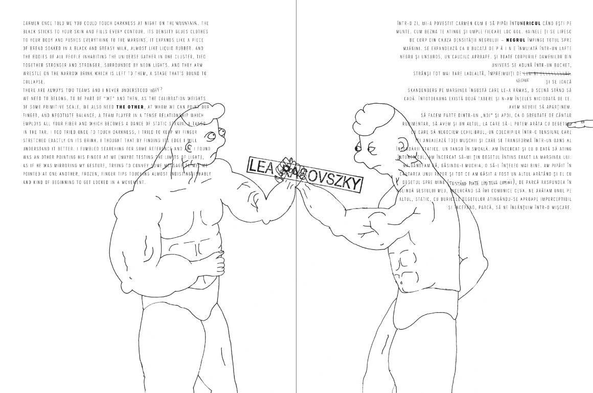 În ultima vreme, mă tot întrebam cum ar arăta dacă aș încerca să găsesc un soi de fir narativ pentru tot ce desenez, să încerc să prind retrospectiv momentul în care s-a schimbat ceva și mai ales de ce. Cu Larisa Sitar vorbeam de ceva vreme despre cum ar fi să fie totul sub formă de carte. Intrasem într-o poveste vizuală foarte mișto. Voiam ceva anti, punk și în același timp pop, cu inside jokes și naughtiness (acolo unde se află defapt arta pură, după părerea nostră). Așa că am făcut asta.