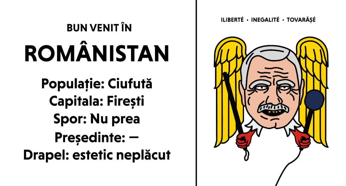 În Românistan e liniște și pace. Economia merge cât de cât (se poate și mai bine), datoria externă e sub control, nu există conflicte de stradă – o țară ca oricare alta. Prezența la vot nu e cine știe ce, e drept. Populația stă mai mult la țară și e cam îmbătrânită. Tinerii pleacă din țară. De la un tur de alegeri la altul, Partidul Simplu și Drept câștigă din ce în ce mai multe voturi, până ajunge să aibă majoritate parlamentară și să formeze Guvernul. Guvernul e condus de marioneta șefului de partid, care încearcă să schimbe legi, astfel încât să-i meargă lui bine. Amnistiază corupții din închisori. Elimină infracțiunile de corupție din legi. Numește în fruntea tuturor instituțiilor importante prieteni ai partidului. Deși unii oameni protestează pe străzi, sunt bătuți de poliție și arestați. În cele din urmă, țara își închide granițele, liderul partidului își elimină adversarii politici și devine șef de țară pe veci. Sau măcar până când moare.