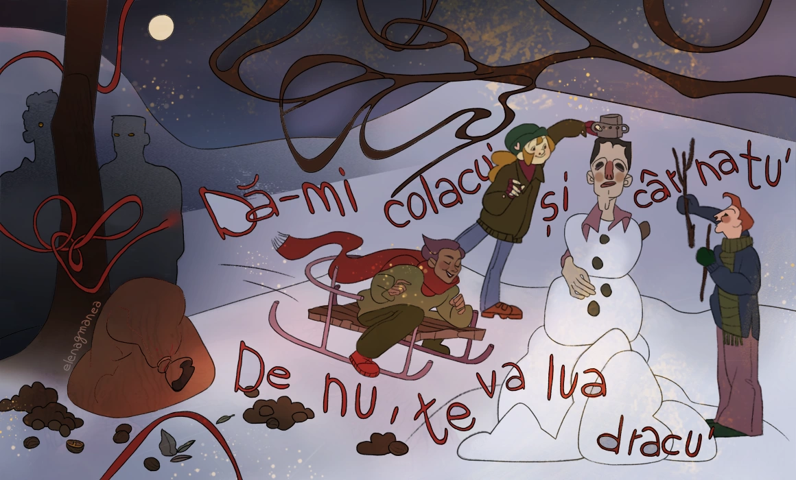 Sania mea nici măcar nu era sanie, ci o îmbinare de scânduri putrede pe nişte tije ruginite. Alunecam cu ea pe zăpadă, dar alunecam şi de pe ea. Se urcau pe mine pisicile din vecini, se urca și Ioana, ca să facă sunetul de la capătul lumii; atunci eram eu sania. Străzile Banatului ardeau. Adulții erau speriați și aprindeau focuri în șanțuri, iar noi chiuiam și ne băteam cu bulgări de zăpadă. Am colindat în acea noapte prin tot Cenadul. Vâlvătăi cumplite se înălțau la cer, de parcă focul încerca să evadeze din sine de teamă să nu fie stins de copiii dezlănțuiți întru colind. Ioana legase o gazdă de un copac, pentru că nu voia să-i dea răchie, și a scos din buzunar o brichetă, ca să-și aprindă țigara care-i atârna leneșă în colțul gurii. Gazda îi aruncase o privire dezaprobatoare. Probabil îi venea să spună copiii nu au voie să fumeze, dar a tăcut, scrâșnind din dinți, ca să nu încalce zaconul pițăratului. Flacăra brichetei era mare, iar Ioana o urmărea din ochi cum îi atinge vârful țigării și apoi se ridică spre marginile interioare ale sprâncenelor sale, pârjolindu-le. Pe chip nu i se citea nicio urmă de îngrijorare. Ca și cum nu era prima dată când își aprindea țigara în felul ăsta. După ce a suflat fumul în direcția gazdei, a plecat fără să spună o vorbă, cu sprâncenele fumegânde. Nu am mai văzut-o de-atunci. Nu ne-a zis niciodată de ce simțea mereu nevoia să fugă de-acasă.
