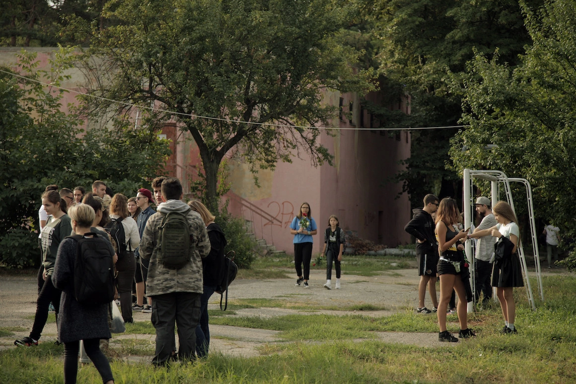 E prima zi de școală și în sala de sport a Liceului de Arte Plastice din Timișoara răsună vocile unor preoți care citesc „Tatăl nostru”. În dreapta lor se află un polițist tânăr într-o uniformă impecabilă și câțiva oameni din conducerea școlii, care ba privesc smeriți în pământ, ba le fac semne elevilor să se liniștească. În spatele lor se văd două coșuri de baschet pe care sunt lipite bannere cu Sprite. Sala e plină, sunt toate clasele aici, de la cei mici până la clasele a XII-a, încolonați alături de diriginții lor. Cei de gimaziu par foarte emoționați, dar odată ce treci la clasele mari, atitudinea se schimbă complet: unii râd pe ascuns la partea cu „și nu ne duce pe noi în ispită”, alții își verifică telefoanele și sunt complet rupți de ce se întâmplă în jur.