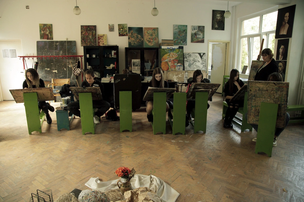 Îmi dau seama că ating un punct sensibil și odată deschis acest subiect, tonul profesoarei se schimbă. Îmi povestește cu nostalgie despre vechea clădirea din centru („era de suflet acel loc), care era aproape de muzee și de galerii, plus că aveau în apropiere și magazinele cu accesorii de pictură și desen. Cu toate astea, toată lumea pare că se bucură de curtea asta largă și înverzită în care poți să ieși și „să mai pictezi o frunză, un copac”, după cum îmi zice un elev.