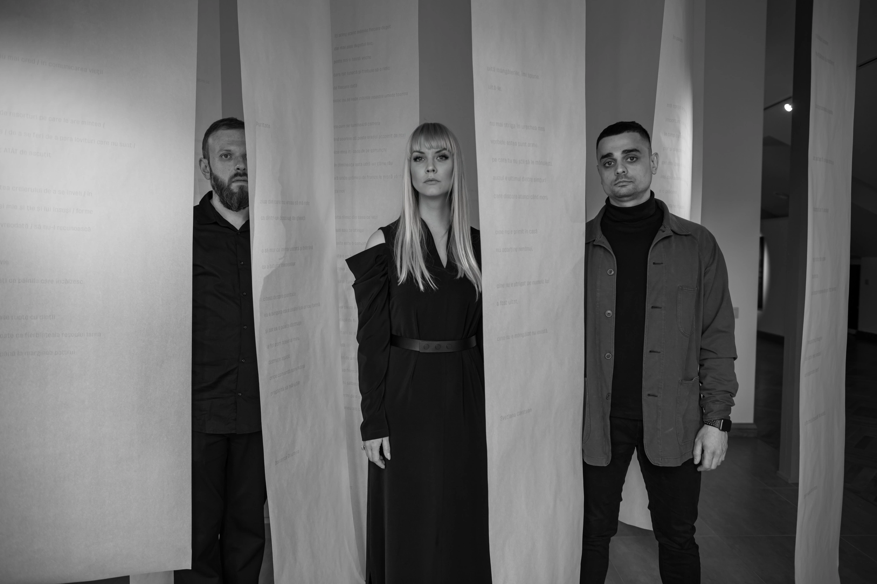 „Dar acum simt că pot decide mai liber să vorbesc în română, aleg conștient să fiu tot mai des în compania comunităților de vorbitori de română. Și chiar dacă mi-e dificil să vorbesc, mă aflu într-o stare de ascultare activă și asimilare.” Într-adevăr, pe Victoria am tot prins-o pe la evenimente de poezie prin Chișinău, iar populara expoziție multimedia Through Touch, pe care a creat-o la Muzeul Național de Artă al Moldovei în 2022, împreună cu Alex și Karen Grigorean, includea și o instalație cu fâșii de hârtie semi-străvezie care curgeau din tavan, pe care era tipărită poezie română douămiistă, citită cu voce tare în boxe.