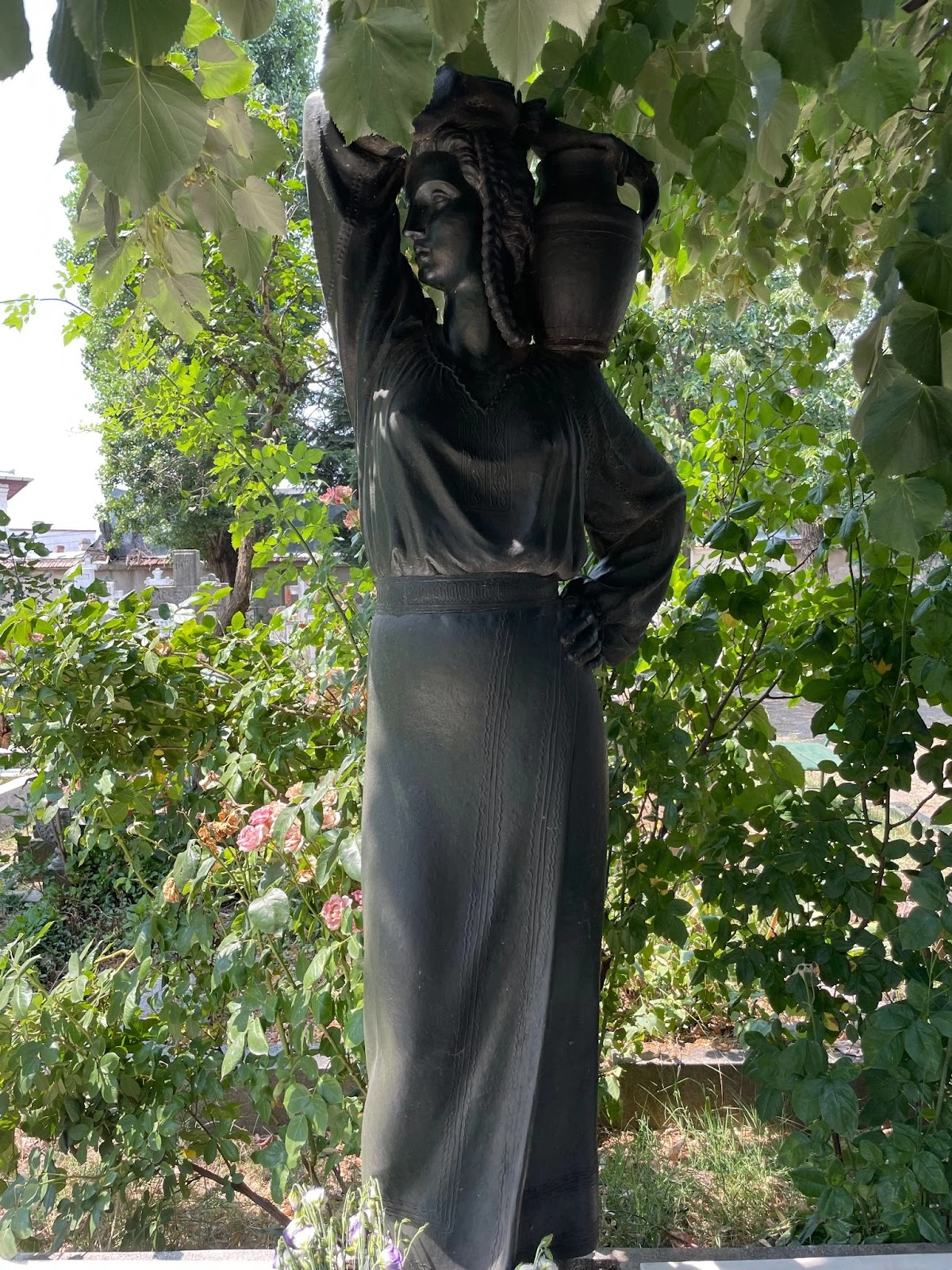 Sincer, majoritatea sculpturilor mele favorite din București se află în cimitirul Bellu. Am petrecut foarte mult timp acolo și cred că e, probabil, cel mai bun loc din oraș în care să vezi sculptură românească. Sunt atâtea monumente și povești fantastice în Bellu, dar dacă ar fi să aleg una pe care o iubesc, ar fi mormântul Sofiei Mavrodin, realizat de Constantin Bălăcescu. Sophia era o tânără alpinistă de la sfârșitul secolului 19 care a căzut de pe o stâncă și a murit după ce a fost atacată de un vultur care-și proteja puii. Îndoliat, tatăl i-a ridicat un monument care e, jur, o replică la scară mică a vârfului de pe care a căzut. Făcut din bucăți din aceeași stâncă, tatăl a angajat muncitori care să o spargă și să o transporte, piatră cu piatră, la București. Sofia e portretizată ca un înger de marmură care urcă spre munte, dar partea care mă emoționează este că tatăl a ales să comemoreze și vulturul, spunându-i lui Bălăcescu să îl toarne în bronz și să îl așeze în vârf. Este o relație cu moartea pe care o întâlnești într-un loc ca Bellu. Nu știu dacă este o realitate românească de secol 19 sau doar nu e comun locurilor din care provin eu, dar e intrigant și o sursă de inspirație pentru mine.