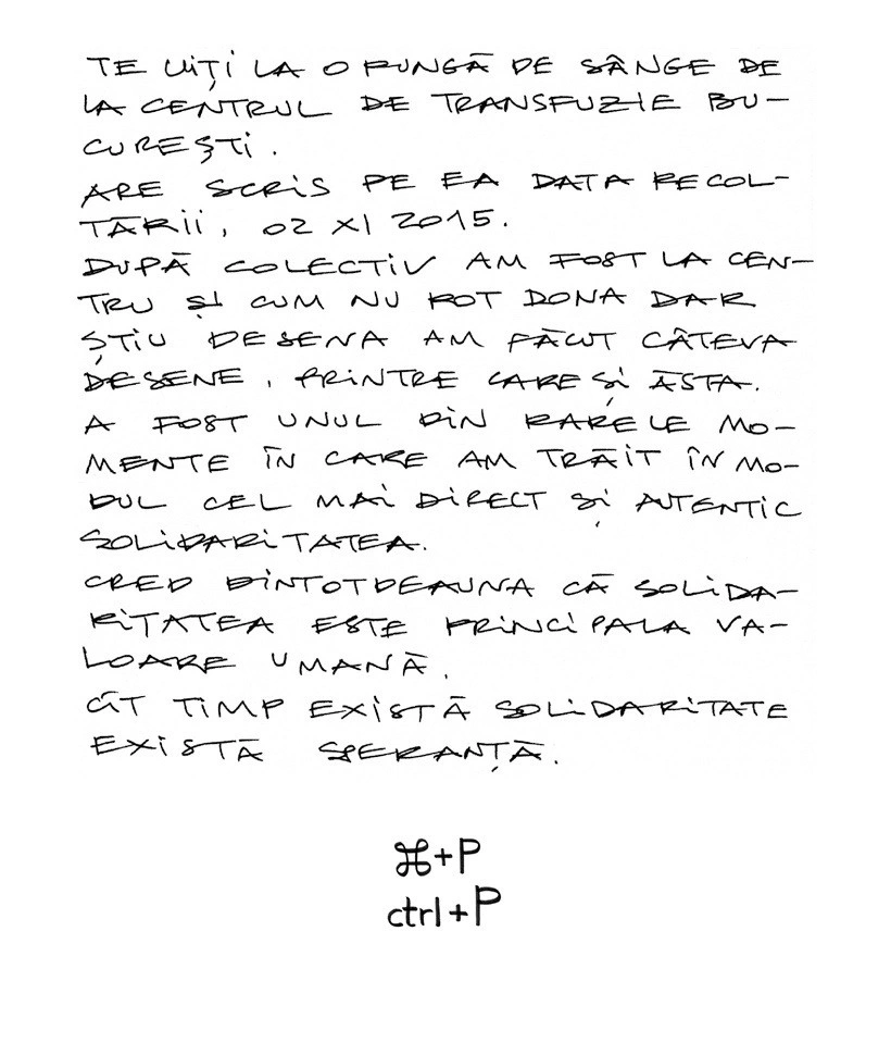 Pe unul l-a transformat într-un manifest printabil, despre solidaritate ca răspuns în fața durerii colective și individuale. Dacă vrei, poți printa acest manifest (de aici: https://bit.ly/34gIz3A) și-l poți împrăștia unde crezi c-ar putea să conteze. Pentru că de sânge avem nevoie mereu, la fel cum avem nevoie și de solidaritate.