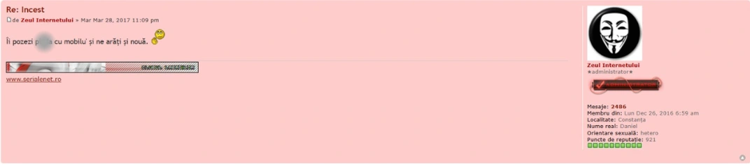Administratorul forumului știa încă din 2016 ce fel de imagini erau distribuite pe acest site. Timp de aproape un deceniu, a fost un participant activ în acest spațiu online: a creat thread-uri, a distribuit imagini și a solicitat, la rândul său, fotografii de la alți utilizatori. Nu a închis forumul atunci când a devenit conștient de conținutul distribuit, ci abia în momentul în care neregulile site-ului au intrat în atenția opiniei publice.