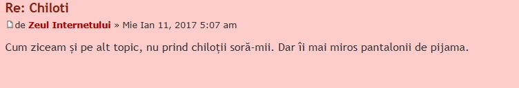Un utilizator spune despre o imagine trimisă pe forum că nu crede că fata din imagine are mai mult de 17 ani. Daniel Marian Dionisie adaugă: „Eu zic că are vreo 14. Și da, merită laba.”