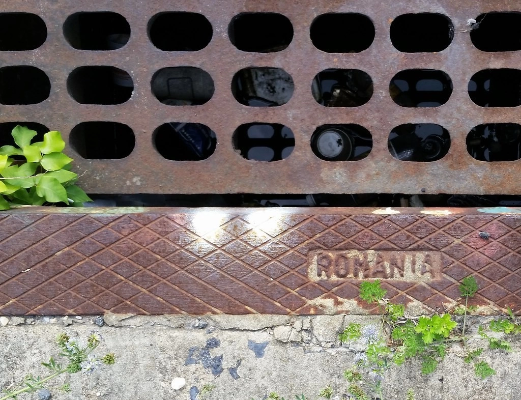 În altă poză scrie „ROMANIA” pe o gură de canal.