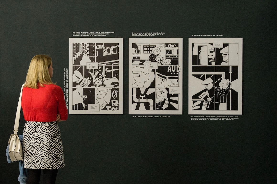 - Ioana Trușcă, arhitectă și ilustratoare, a creat nouă povești de bandă desenată, nouă scenarii de utilizare a unui apartament cu două camere, nouă feluri de a interacționa cu spațiul. „Studentul, freelancer-ul, cuplul tânăr, adolescentul și familia, cuplul de vârstnici sau bătrânul singuratic interacționează în mod diferit cu spațiul. Așa că am luat bucăți din viața «de apartament» a fiecăruia, pe care le-am aranjat în câte două sau trei pagini, desenate în cerneală. Fiecare poveste vorbește despre o obsesie, uneori abia sesizabilă, în alte rânduri mare cât camera de zi, dar de fiecare dată tipică vârstei și obiceiurilor utilizatorului. Undeva între o realitate calculată în metri pătrați, comedie și ridicol, se desfășoară viața la bloc a acestor super-eroi ai cartierului”, spune Ioana Trușcă.