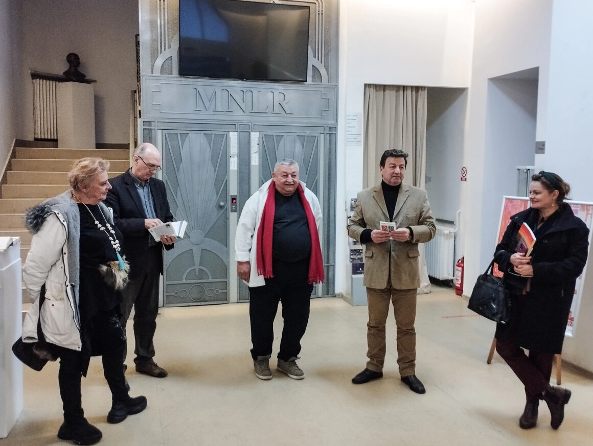 În timp ce vorbește Lefter, se mai aude câte un „miau” prelungit din sală. E poeta Ioana Crăciunescu, care se sprijină de spatele lui Adrian Cioroianu. Între timp apare și regizorul Cristi Puiu. Stă undeva în spate, discret și tăcut. După care dispare.