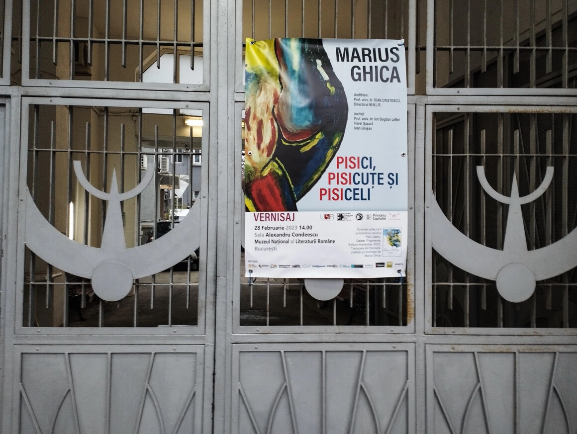 Muzeul Național al Literaturii Române sărbătorește venirea primăverii cu Pisici, pisicuțe și pisiceli. Așa se cheamă expoziția lui Marius Ghica (pseudonimul lui Marius Ghiță), artist craiovean și om de litere „antrenat” în tinerețe de filosofii Jacques Derrida, Constantin Noica și Mihai Șora – după cum o spune chiar el. Vernisajul are loc în prag de 1 Martie, așa s-au gândit probabil organizatorii să aducă un omagiu „eternului feminin”.