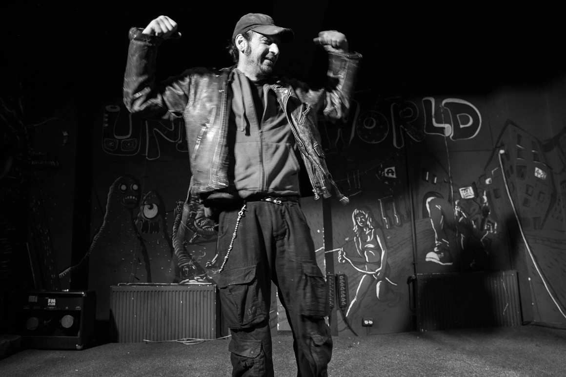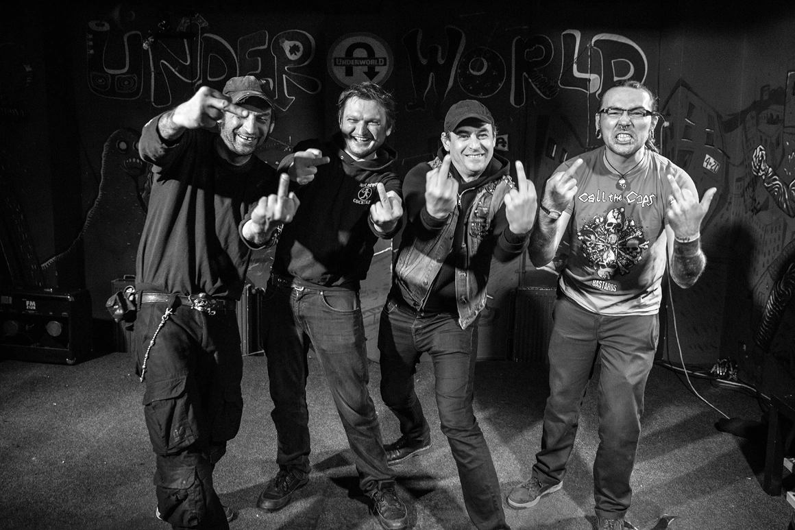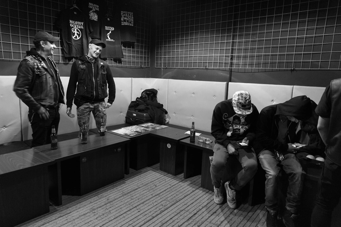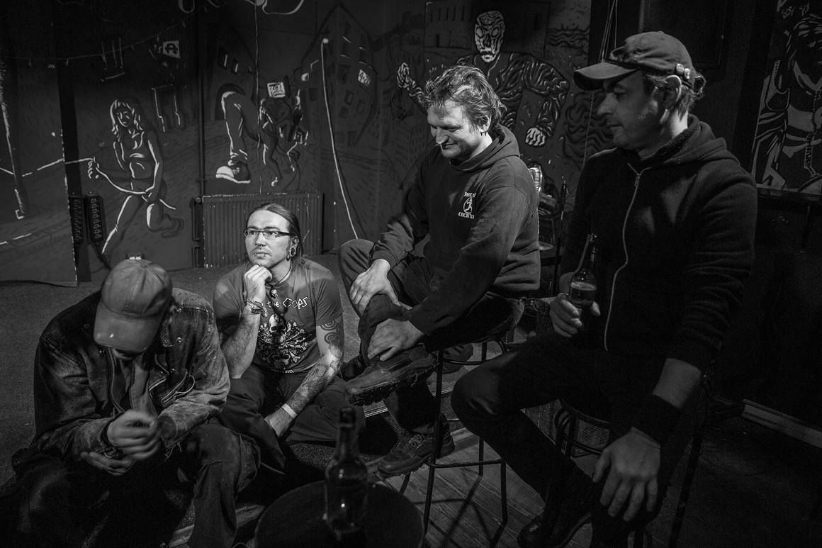 Până să cânte în locuri ca Fabrica, Molotov Cocktail a concertat în venue-uri celebre pe scena punk de peste ocean, precum CBGB’s, The Gas Station sau ABC no Rio, împărţind scena cu nume ca The Varukers, MDC, The Subhumans, Chaos UK, Ratos de Porao, Agnostic Front sau Pennywise. Jello Biafra, liderul Dead Kennedys, le-a scos un single, iar trupa a fost în turnee prin Brazilia, Columbia sau Japonia. Ne-am întâlnit cu membrii ei în subsolul de la Underworld – micul club punk din Bucureşti pe care-l manageriază frontman-ul Gabby Molotov. Din ’91, de când e formația, prin ea s-au perindat vreo 20 de oameni. Gabby a fost singurul constant. Acum, trei dintre membrii actuali – Vlad, un român care-a locuit în Barcelona, neamţul Mitch şi Dima – stau în Berlin. Gabby se întâlnește cu ei de două-trei ori pe an.