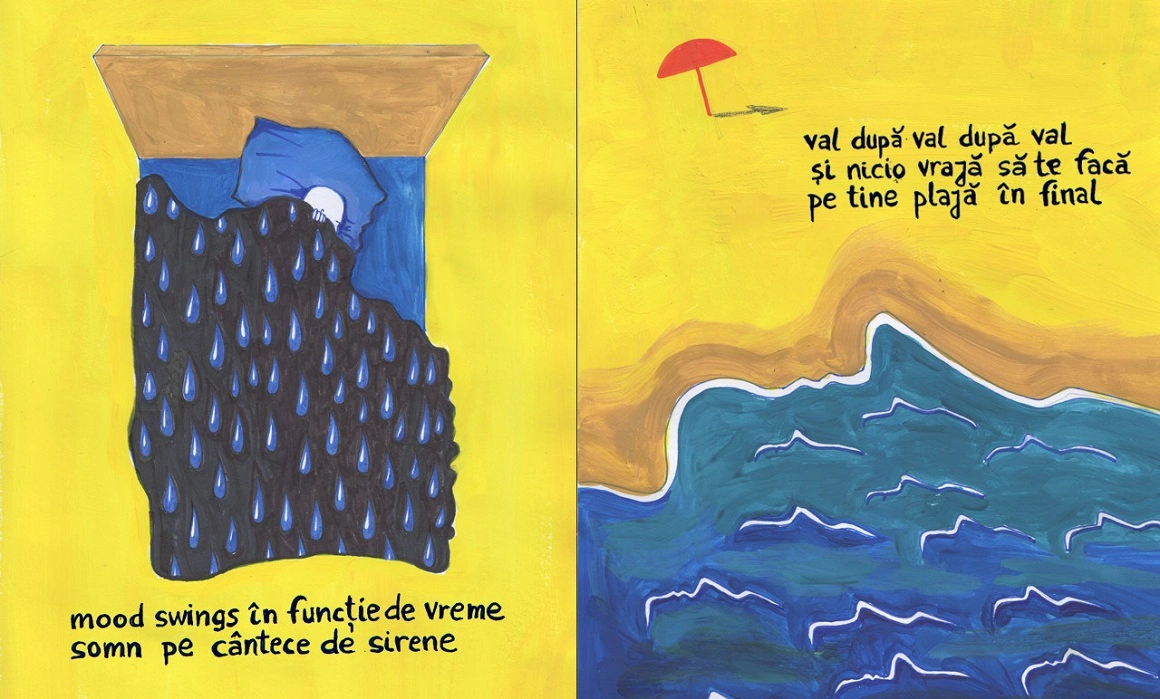 Dacă vrei să mai citești astfel de poeme ilustrate, Andreea a mai lucrat și cu texte de Nora Iuga, Nina Cassian, Leonid Dimov sau Cristina Ispas. De curând a publicat o nouă carte cu ilustrațiile ei.