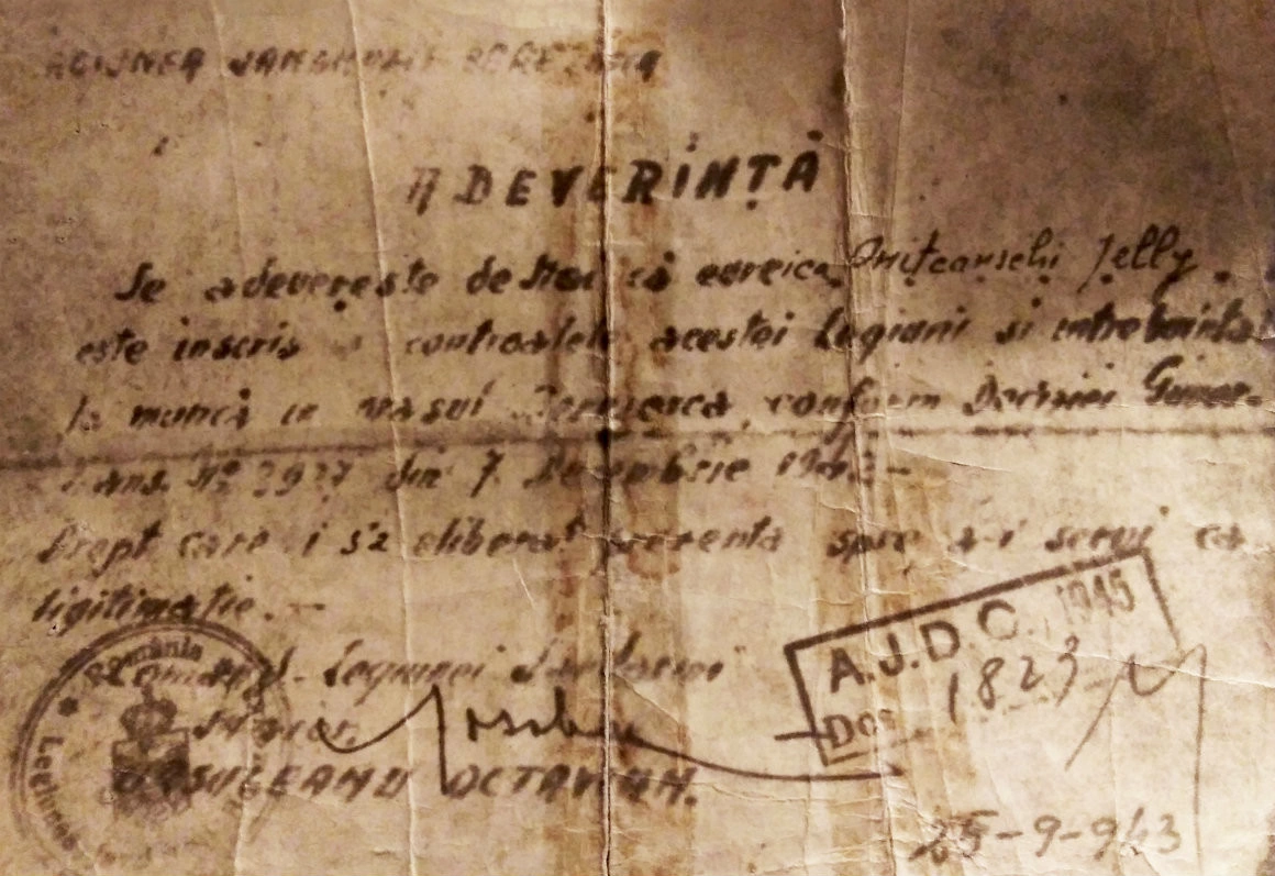 Grație lui Bordeianu și celor 10.000 de lei, Angela a ajuns în țară, unde a fost plasată la Orfelinatul de la Iași. În buzunar avea o bucată de hârtie scrisă de mână și cu semnătura lui Ursuleanu, datată 25.09.1943. Era o adeverință care arăta că „Jelly Onițcanschi” era înscrisă în evidențele Legiunii de Jandarmi Berezovca și că era folosită la muncă (forțată).