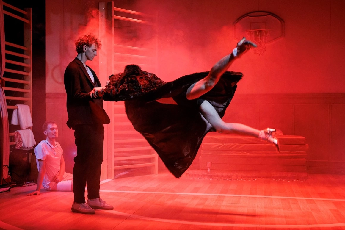 Finalul îl arată pe Eduard Chimac — care seamănă și fizic, prin părul blond, nu doar prin nume, cu Louis – într-o poziție de forță, la inele, de unde se strecoară grațios într-o minunată fustă roz pal din pene. Traseul parcurs de Louis, de la toxicitatea macho până la asumarea identității queer, este surprins elegant într-o singură imagine.