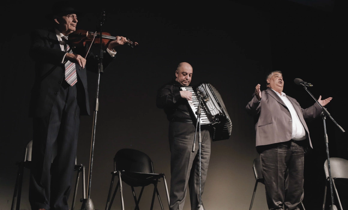 Pe scenă, lăutarii interpretează cântecele Holocaustului sub forma doinei, cântecul de jale românesc. Ioanida spune că le-a dat un cântec al Holocaustului înregistrat, iar ei au ales stilul cel mai potrivit pentru atmosfera creată de versuri. Celălalt cântec interpretat, Mamo, Mamo, a fost sugerat de lăutari și e despre suferința romilor în sclavie. În arhiva digitală RomArchive, România contribuie cu articole despre trupa de teatru Giuvlipen, cântece de-ale lui Salam și manele, ca fenomene ale culturii rome după Revoluția din ‘89. Unul dintre lăutari, Nicu Ciotoi, e profesorul de vioară al Ioanidei și parte din proiectul ei. Cercetătoarea îmi povestește că l-a cunoscut acum patru ani, cântând în Centrul Vechi din București. Pe vremuri, cânta la nunțile comuniștilor. „El nu mai are un loc în lumea muzicală profesionistă. Mulți dintre cei cu care cânta au murit”, îmi explică ea.