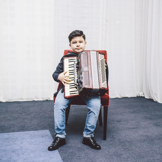 Cel mai mic acordeonist din festival, Dorinel Cutiuță din Năvodari, are 9 ani și 5 luni, cântă la acordeon de aproape doi ani, studiază pian de 3 ani, de 5 luni face și vioară. Prima melodie la acordeon a învățat-o pentru mama lui, să i-o cânte de ziua ei, o horă de-a bunicului, în Re major. Costel Cutiuță, tatăl, e și el acordeonist, iar mama, Sorina, e solistă. Au venit cu toții la festival și sunt mândri de Dorinel: „la 9 anișori, la cum cântă el, cred că va avea un viitor frumos. Generația copiilor din ziua de azi are o altfel de mentalitate, el e un copil de 9 ani și cântă cu acordeonul niște piese pe care eu nici acum nu pot să le stăpânesc cum le stăpânește el”, spune Costel. Dorinel visează să fie cel mai bun cu acordeonul, să conducă bine și să aibă o mașină frumoasă. Urcă pe scenă și face un program frumos, stă pe marginea scaunului ca să ajungă cu picioarele la podea.
