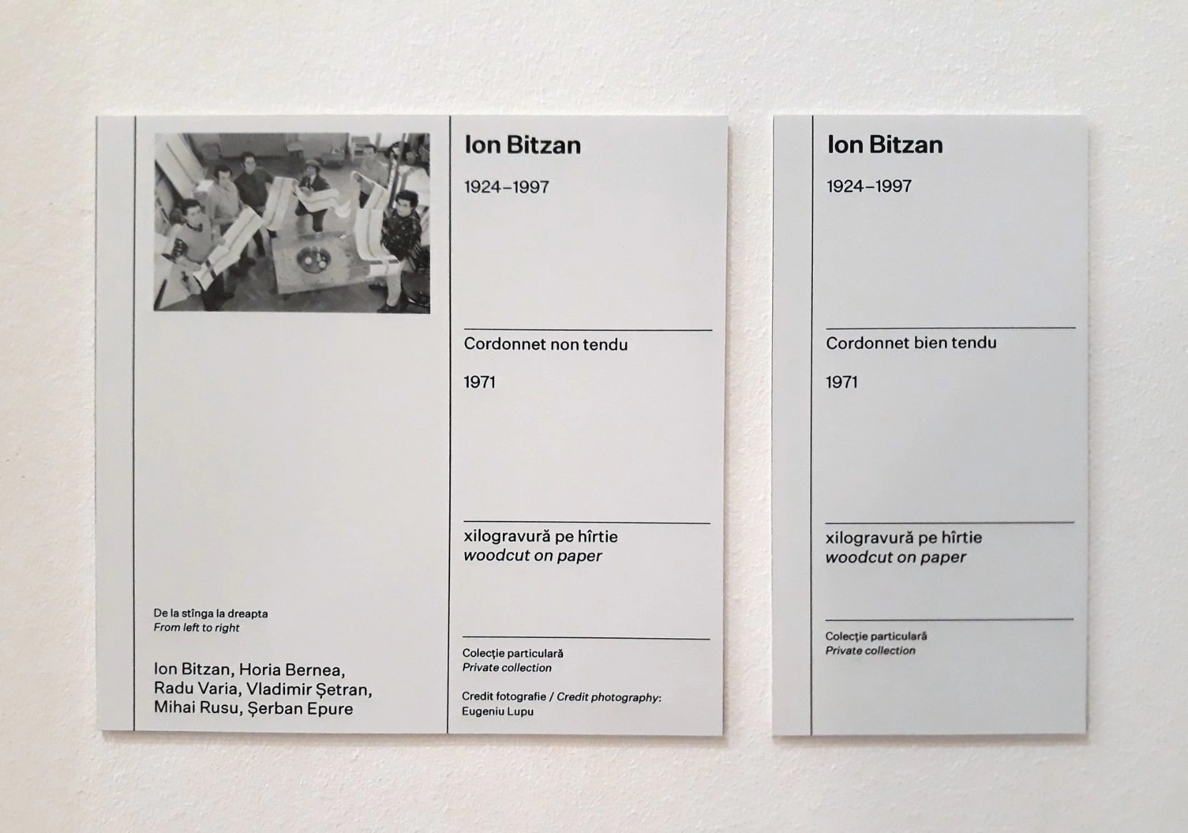 În mod neașteptat, ceva „simptome de nemulțumire” apar deja în anii 1970 la Ion Bitzan, care arată o lucrare cu două ipostaze. „Un cordon bine întins” e pus pe perete în expoziție, sub forma unui print extrem de lung. Un alt „cordon ne-tensionat” apare pe fotografia de pe etichetă. E vorba de un performance al artistului, care e însoțit de o parte din colegii cu care pleca în străinătate să expună artă. Obiectul face parte din „secțiunea de neo-avangardă” a muncii lui Ion Bitzan, cealaltă fiind munca sa în slujba partidului, artistul fiind un cunoscut producător de artă oficială. Întrebarea pe care ne-o ridică acest cordon, la un nivel metaforic, este una aparent infantilă. „De ce e cordonul bine întins în expoziție și des-tins în atelier?” La prima vedere întrebarea pare stupidă.