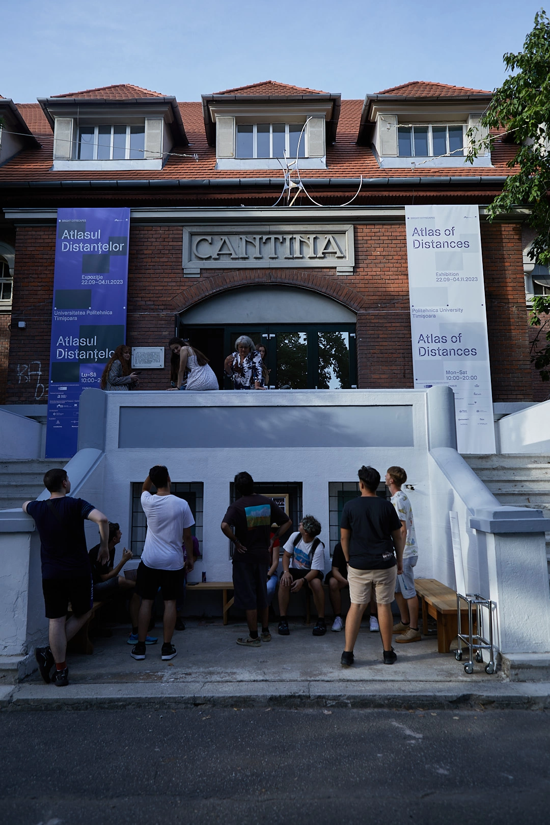 Până atunci, înaintez alături de Loredana Gaiță prin Atlasul distanțelor. În expoziție, îmi explică ea, curatoarea Martina Muzi a găsit o modalitate de a vorbi prin proiecte ale studenților despre diverse probleme de pe glob: „Care sunt zonele de conflict, cum vedem mediul construit sau pe cel înconjurător, cum ne uităm la spațiul public din postura de femei sau cum pot fi transformate și aduse în spații interioare fenomenele meteorologice”.
