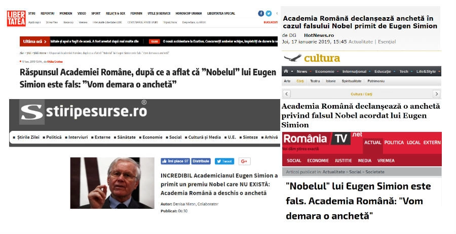 Update: În urma publicării anchetei, mai multe canale de presă care difuzaseră știrea despre „Nobelul” lui Eugen Simion au publicat dezmințiri. De asemenea, numeroși critici și istorici literari care distribuiseră știrea și susținuseră inițial prestigiul medaliei au recunoscut că s-au înșelat.