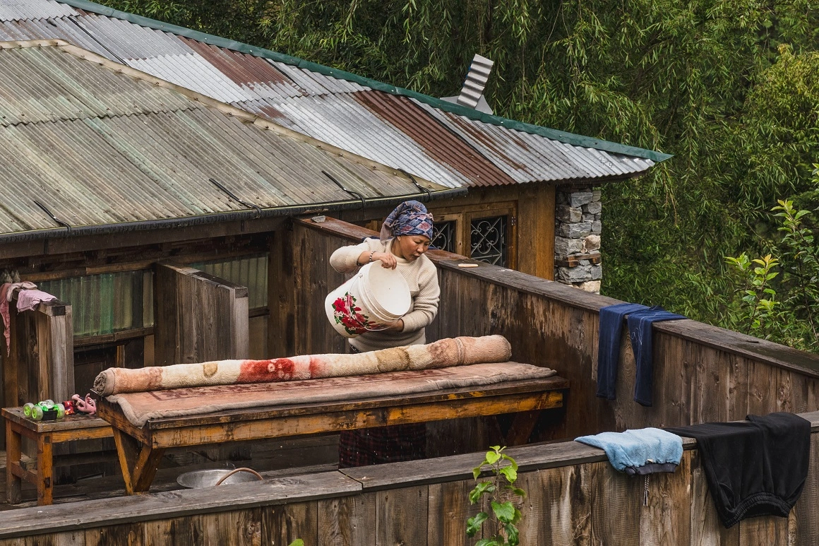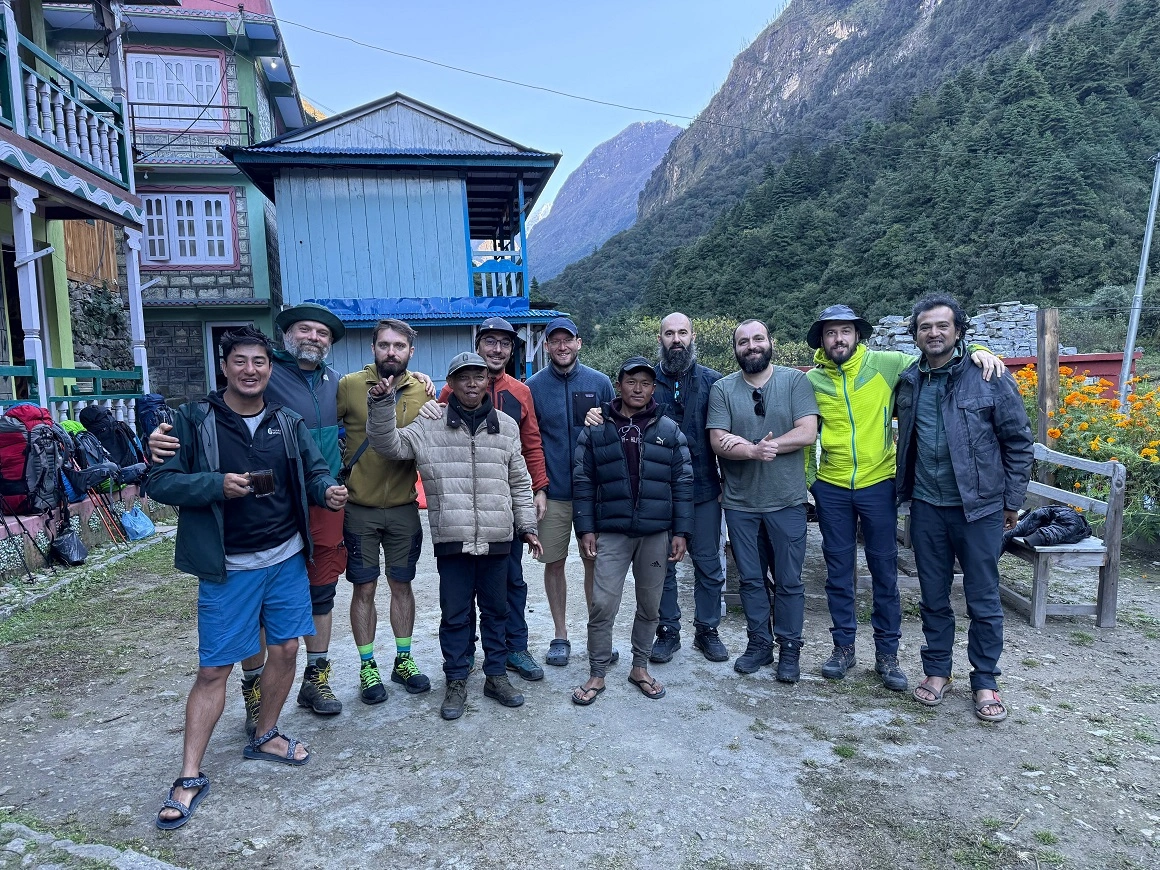 Ideea unei drumeții în Nepal a apărut acum doi ani de la Marius, prietenul meu de-o viață, și tovarășii lui, George și Ovidiu – toți trei lucrează în telecomunicații și au fost colegi de cămin și de muncă. În vara lui 2024 eram cu ei pe segmentul bucovinean al Via Transilvanica și Ovidiu ne spunea că are un cumnat în Kathmandu. Riken, cumnatul nepalez, lucrează în domeniul hotelier și are o trupă de gypsy jazz în care cântă la chitară, bas și contrabas. Iar Rahul, prieten cu Riken din copilărie, lucrează în IT, e fotograf și ghid montan – Rahul va conduce expediția. Din grup fac parte și Paul, fost coleg de muncă și el cu Marius, Andrei, arhitect, și Gabi, fotograf. Paul a mai fost în drumeții lungi, întinse pe mai multe zile, cu rucsacul în spate, iar Andrei și Gabi au și ei mai multe aventuri extreme în spate – acum câțiva ani au fost în Munții Pamir, supranumiți „Acoperișul Lumii”. George glumește că anul ăsta a alergat mai mult decât a condus: printre multe alte competiții, în vară a alergat un ultramaraton de 102 kilometri în munții Piatra Craiului, Bucegi și Leaota.