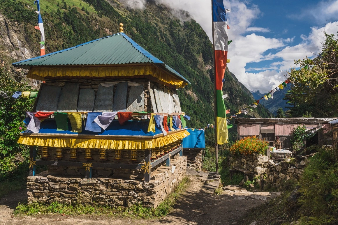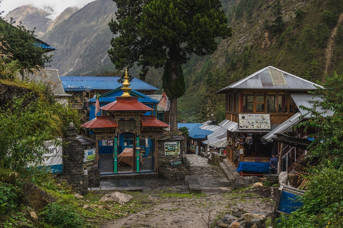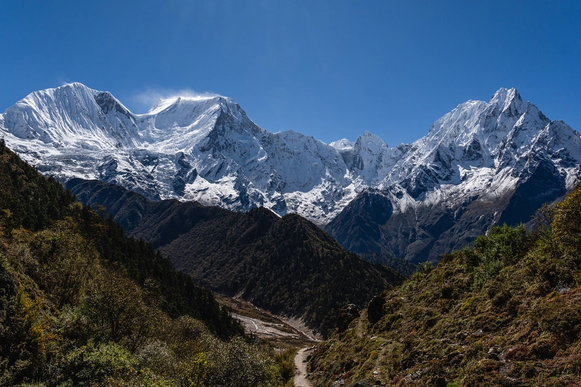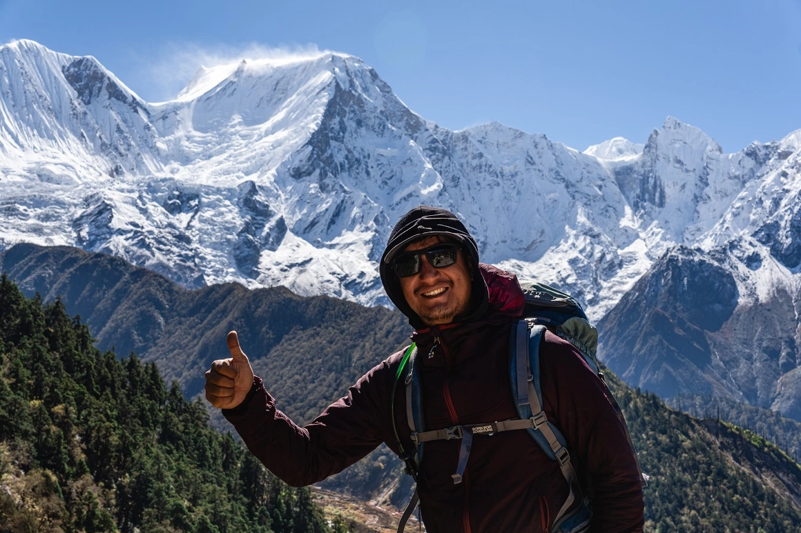 După ce se termină priveghiul, revin la grupul alături de care voi porni la drum a doua zi. Am zburat șapte băieți din România și în Kathmandu ne-am întâlnit cu Riken și Rahul. Urmează să facem o expediție în jurul vârfului Manaslu, unul dintre cele 14 din lume care depășesc 8.000 de metri. Vom merge aproximativ 150 de kilometri pe poteci de munte timp de nouă zile, urcând de la 870 de metri până la altitudinea maximă de 5.106 metri, pe care o vom atinge în trecătoarea Larkya La – punctul cel mai înalt al expediției. Vom înconjura și vom privi din toate părțile vârful Manaslu, al optulea cel mai înalt din lume și unul dintre cei mai periculoși optmiari. Cu rucsacuri grele în spate, vom trece prin climate și reliefuri diferite, de la sate cu câteva zeci de case acoperite de vegetație bogată la munți înghețați. Este o rută mai puțin turistică, dar și mai periculoasă decât altele similare în Nepal, precum cele până la taberele de bază Annapurna sau Everest, și am venit într-o perioadă atipică: de regulă, primăvara și toamna sunt sezoanele de vârf pentru drumeți din toată lumea, însă acum, din cauza protestelor, turismul nepalez e aproape la pământ.