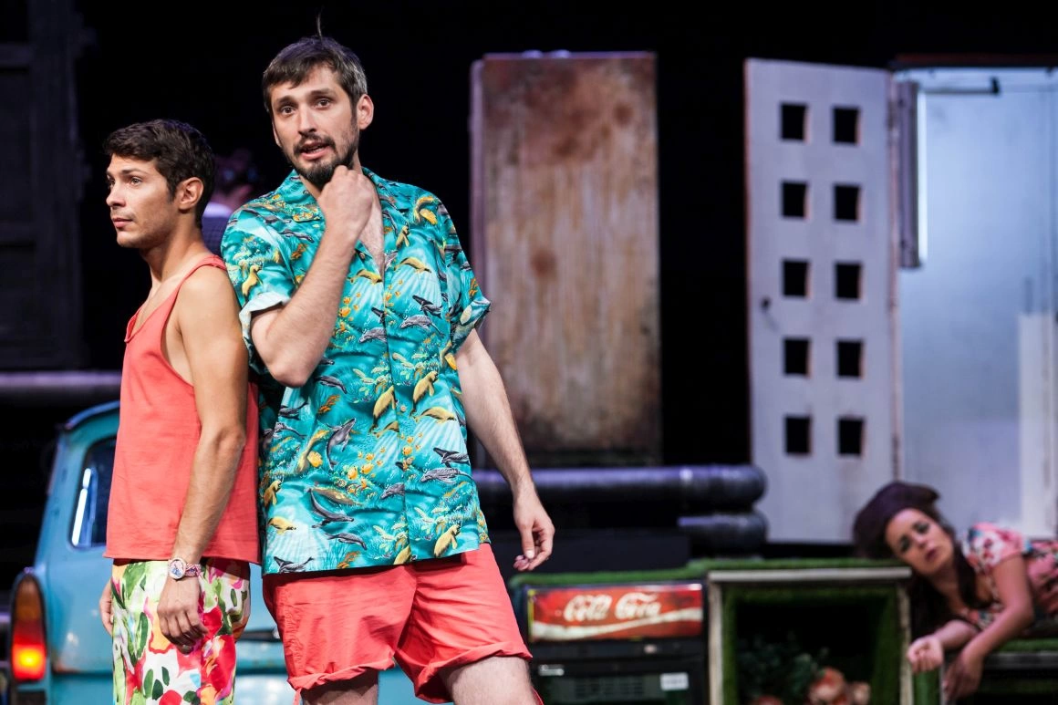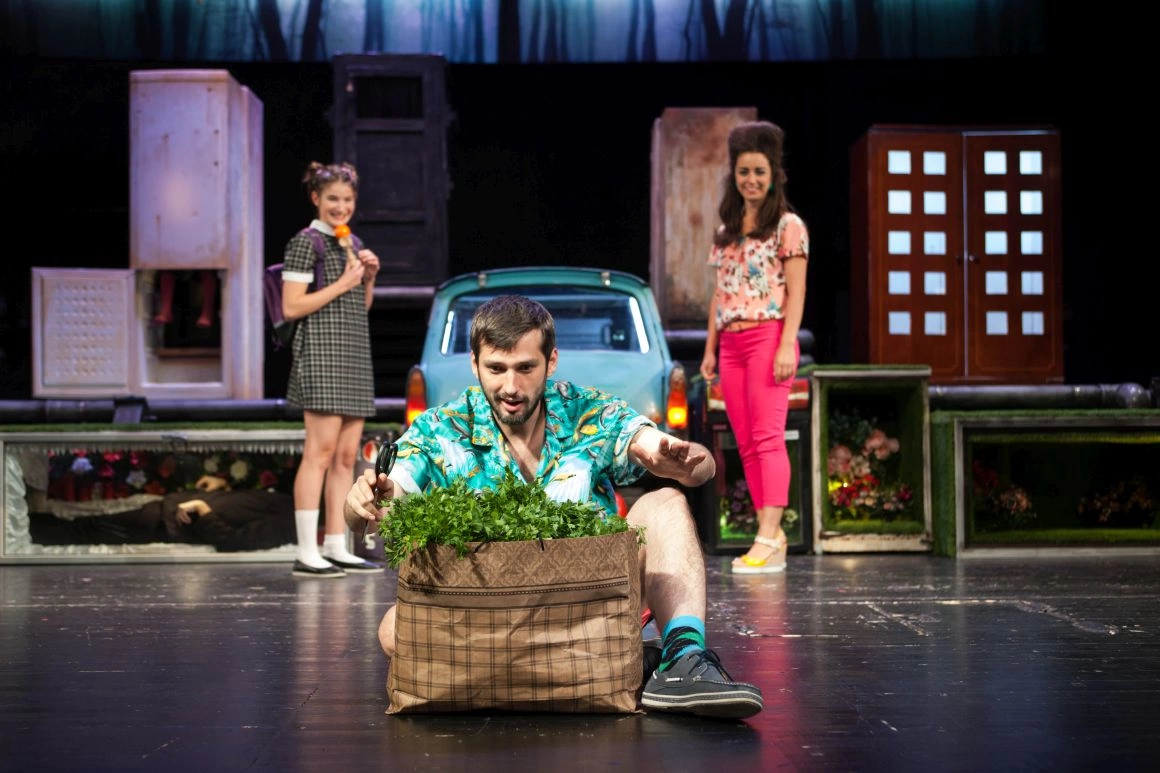 E vorba despre măştile astea pe care şi le pune bărbatul în societate: trebuie să fii puternic, să poţi să mergi mai departe, iar atunci când te loveşte un moment emoţional puternic, nu ştii cum să-l gestionezi. Te sperie, te panichează, te blochează. Unii aleg un drum, alţii aleg un alt drum. Cred că cel mai important lucru despre care se vorbeşte în spectacolul ăsta este comunicarea în cadrul relaţiilor din viaţa ta, că e familie, că e cu vecinii. E vorba de conexiune. O conexiune reală între oameni, nu una prestabilită: fiecare are rolul ăsta de jucat. Eu joc tatăl, bărbatul puternic, ea e mama, care e aşa, şi noi suntem o familie fericită. În spectacolul ăsta, cred că singura conexiune adevărată între doi oameni se întâmplă fix între Fabiana şi Wolfgang. Sunt doar ei doi, izolaţi de toată lumea asta, şi sunt obligaţi să se ducă unul în celălalt. În afara acelui chepeng, în afara Trabantului, în lumea noastră cea de toate zilele, oamenii se pierd în tot felul de lucruri: dacă ai cablu, dacă vin prietenii la tine, invidie, se dispersează atenţia şi conexiunea se face prin exterior faţă de cel de lângă tine, în loc să fie una reală.