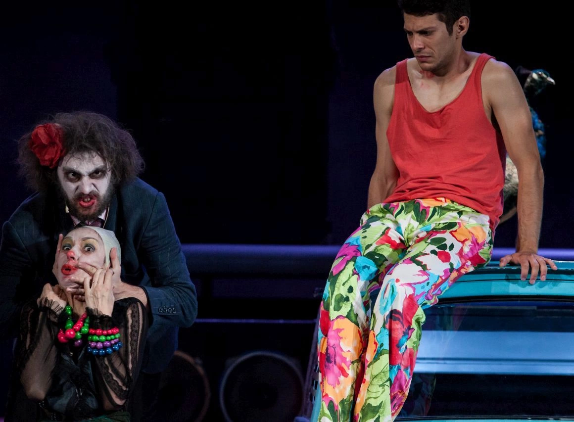 Universul ăsta frumos colorat explodează repede în drame şi traume individuale ce alunecă deseori în psihoză. În spatele lor stau personajele vulnerabile ce definesc universul lui Afrim şi care, în acest caz, întruchipează sechelele relaţiilor defectuoase pe care le-au avut şi încă le au. Wolfgang e bântuit de nefericirea părinţilor săi şi de un tată autoritar şi chinuit care-şi terorizează familia şi din mormânt. Întruchipat de o fantomă, tatăl, un fost popstar cu faimă insuficientă, îşi duce mai departe gelozia faţă de soţie şi-i transmite lui Wolfgang: „Să n-ai încredere în femei, că astea au ceva de ascuns.” Soţia lui a rămas paralizată în spaima indusă de gelozia unui soţ infidel căruia i-a fost mereu loială şi ajunge să-şi copleşească fiul cu frica ei. De cealaltă parte, prinsă între un tată superficial şi o mamă alcoolică, Fabiana îşi doreşte doar ca părinţii ei s-o iubească mai mult.