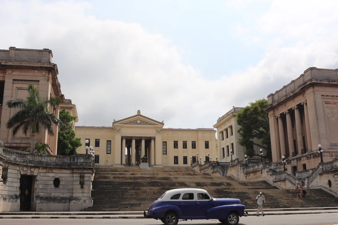 În cameră mă aștepta huruind un aparat vechi de aer condiționat, acompaniat de zbaterile unui ventilator de tavan. Ca să adorm, mi-am pus dopurile de urechi de care nu mă despart în călătorii. Când m-am trezit, mi-am dat seama că sunt cu adevărat în Cuba. Entuziasmul din noaptea în care îmi rezervasem biletul revenise și uitasem chiar și de jet lag. Cu ajutorul lui Orlando (sau Landi, cum îi zic prietenii) pentru prieteni, am schimbat 100 de euro la bancă, după care am ieșit la plimbare. Încercam să suprapun Havana simțurilor cu Havana romanticizată din literatură și filme, cât și cu cea pragmatică din review-urile turiștilor. Vedado e un cartier de vile cu străzi largi, punctate de vegetație luxuriantă în spatele căreia se ascund clădiri fabuloase, printre care și cîteva ambasade.