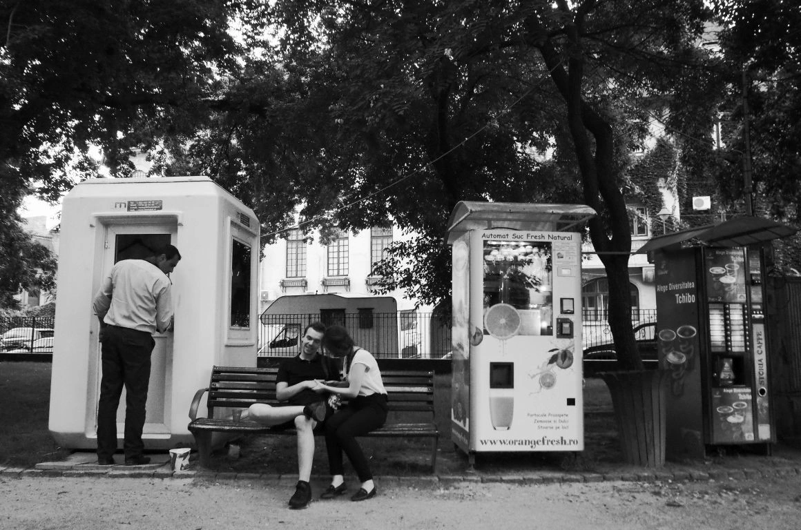 Dincolo de ele, încep să simt tot mai mult neîncrederea şi lipsa de apropiere dintre oameni. Îmi îndoi genunchiul de câteva ori în pasajul de la Universitate, așteptând niște sărățele de la o patiserie și o bătrână mă întreabă cu ţâfnă: „Sunteţi cal de daţi aşa din picior? Aveţi şi rucscacul ăla în spate, nici nu mă pot apropia de dumneavoastră.” În cel de la Victoriei, doi homeleşi tineri, la bustul gol, stau în fund în vârful scărilor rulante, iar unul dintre ei strigă: „Cumpăr sărutul, cumpăr sărutul.”