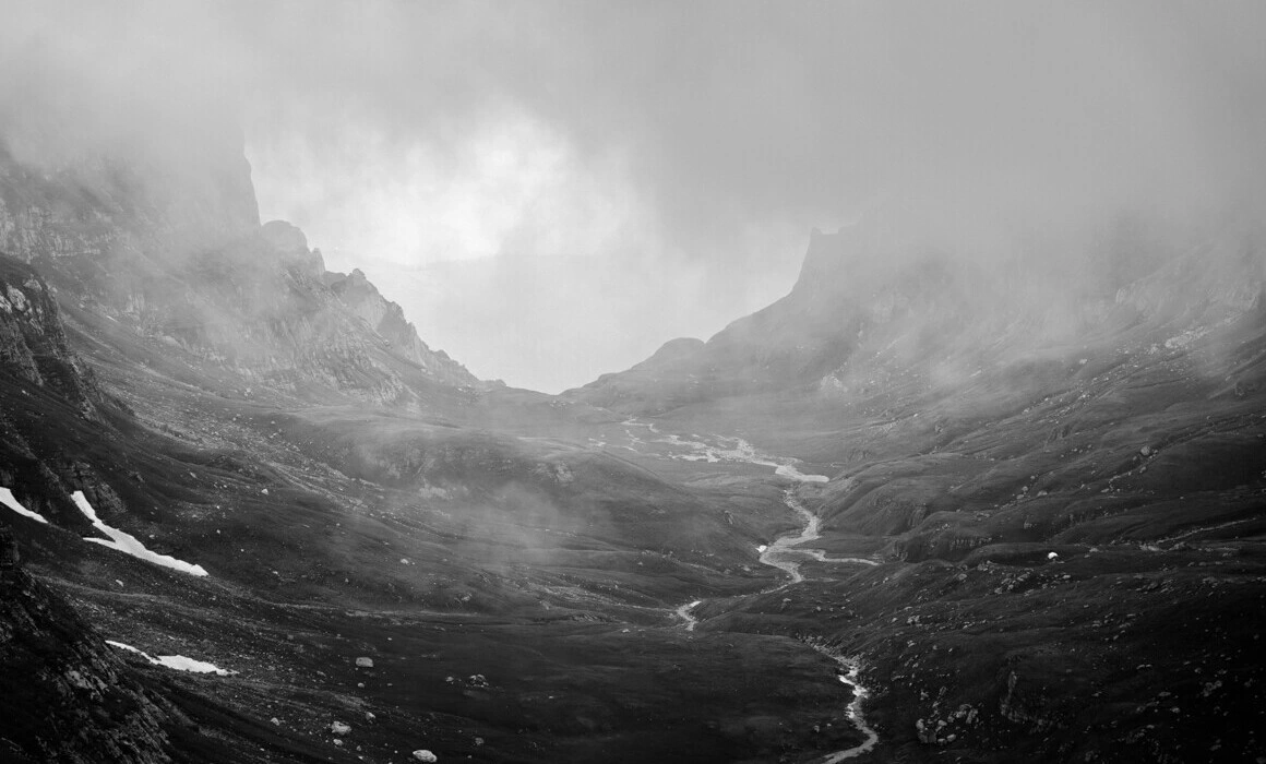 După ce mă îndop cu atâta mâncare bună, simt nevoia să ies la aer și să fac o plimbare. O iau pe lângă cabană și de acolo cobor pe panta care duce spre Vârful Bucura. E încă după-amiaza devreme, dar am senzația că s-au scurs două anotimpuri de dimineață până acum. Se ridică ceața și totul capătă o nuanță cenușie, metalică. Întorc capul și observ cum contururile corabiei încep să se dilueze. Rămâne doar lumina gălbuie de la bucătărie, care pâlpâie în ceața păstoasă.