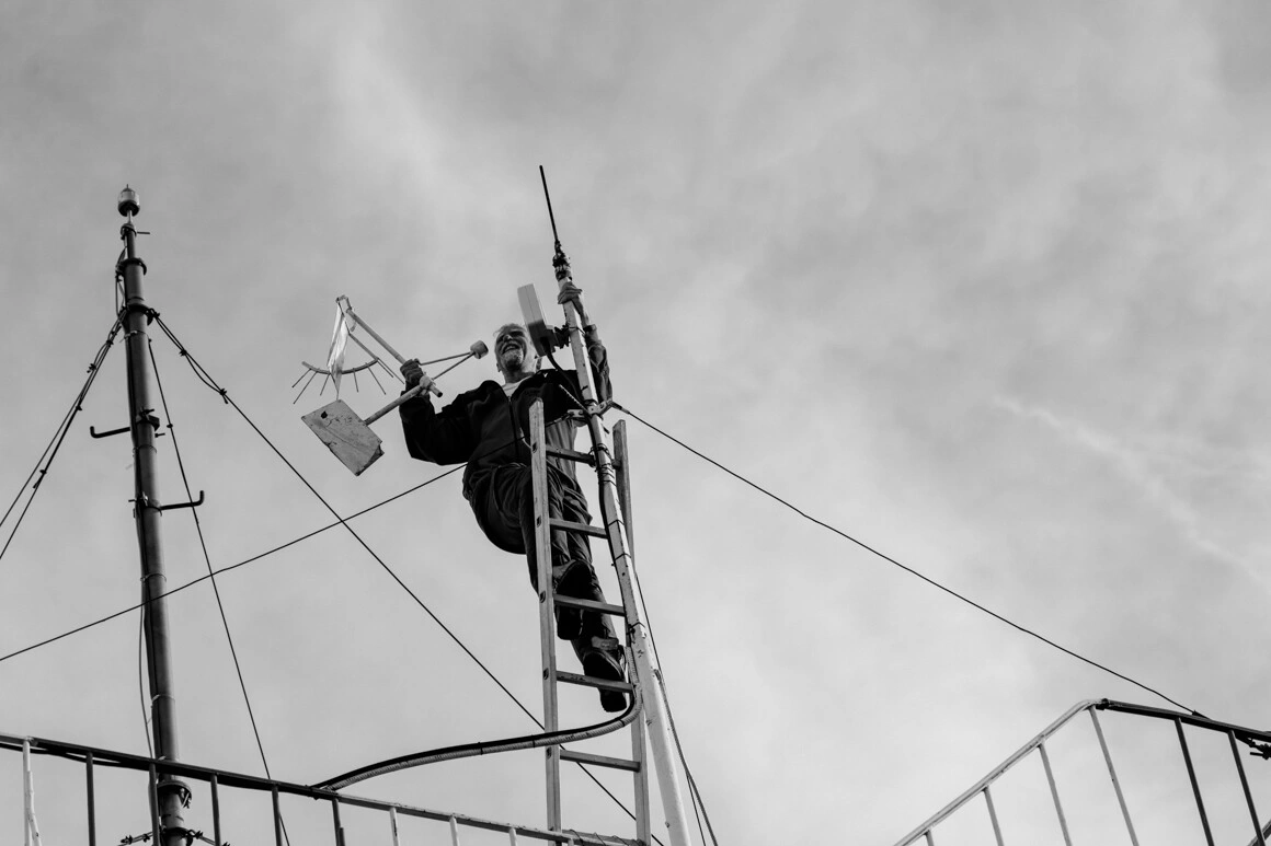 Radu îmi face un tur prin cotloanele întunecate ale stației și îmi povestește de un fost coleg care se plictisea de moarte când intra în tură și „striga de unul singur pe scări hai Steaua, hai, Dinamo.” Nici cel care lucrase înaintea lui, în anii ‘90, nu se împăcase bine cu condițiile de pe corabia din vârful munților, mai ales că-l și speriau colegii cu povești despre fantomele care bântuie stația. Munca de la Omu nu e pentru oricine. Acum mai bine de 20 de ani, când s-a angajat la stația meteo, mai întâi ca tehnician, cei de Centrul Meteorologic Regional i-au spus: „Neapărat să veniți cu testul psihologic făcut.”