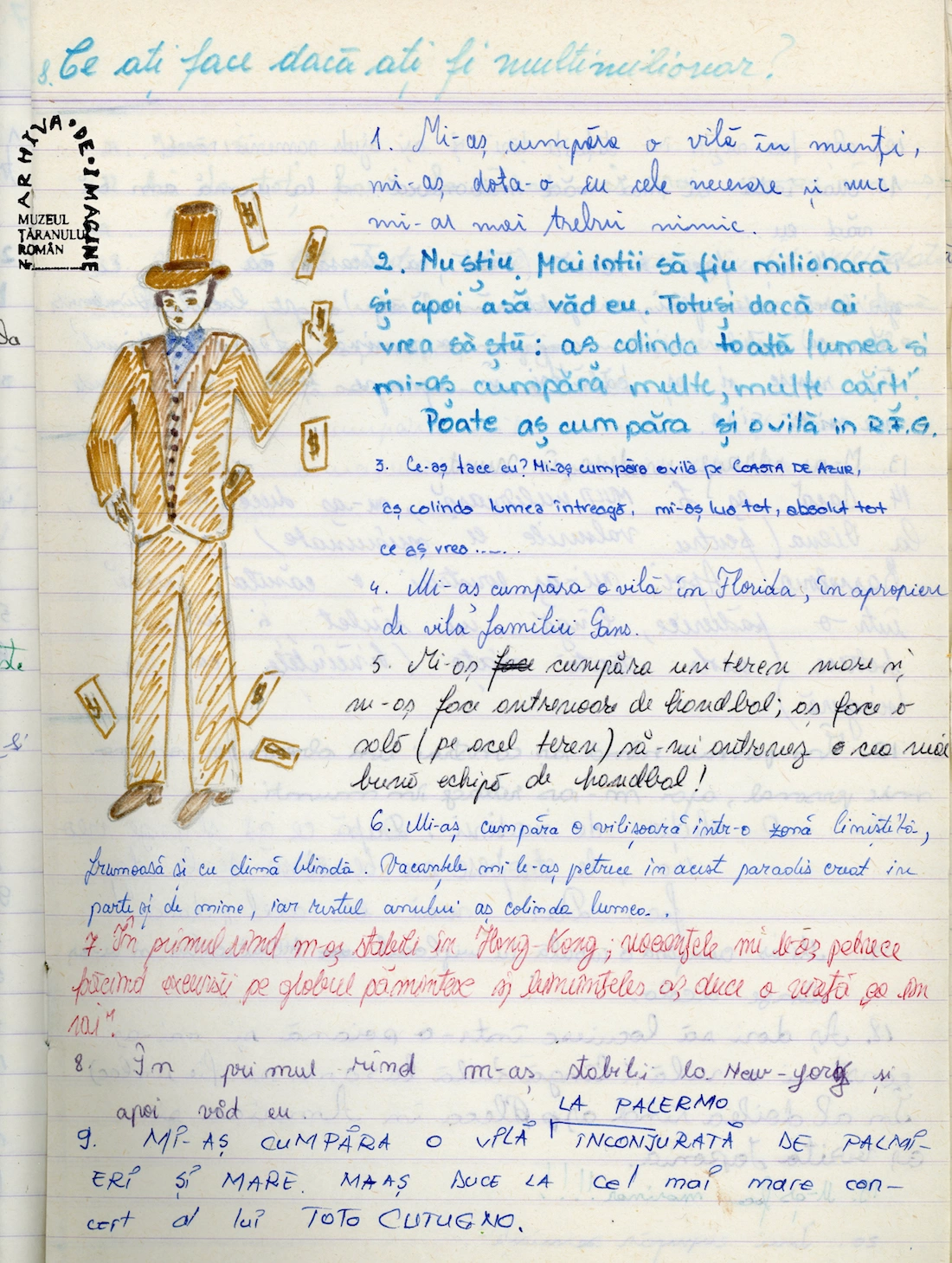 Pentru Anca-Maria Pănoiu, asistent curator al Arhivei de Imagine MȚR, colecția asta reprezintă „o bombă antropologică”, pentru că fiecare colț de pagină, fiecare întrebare sau poezioară stângace are ceva de zis despre istoriile intime și despre aspirațiile unor viitori adulți. „E un fel de arheologie modernă ce facem noi acum aici”, spune Anca, în timp ce răsfoiește caietul lui Ÿulÿ.