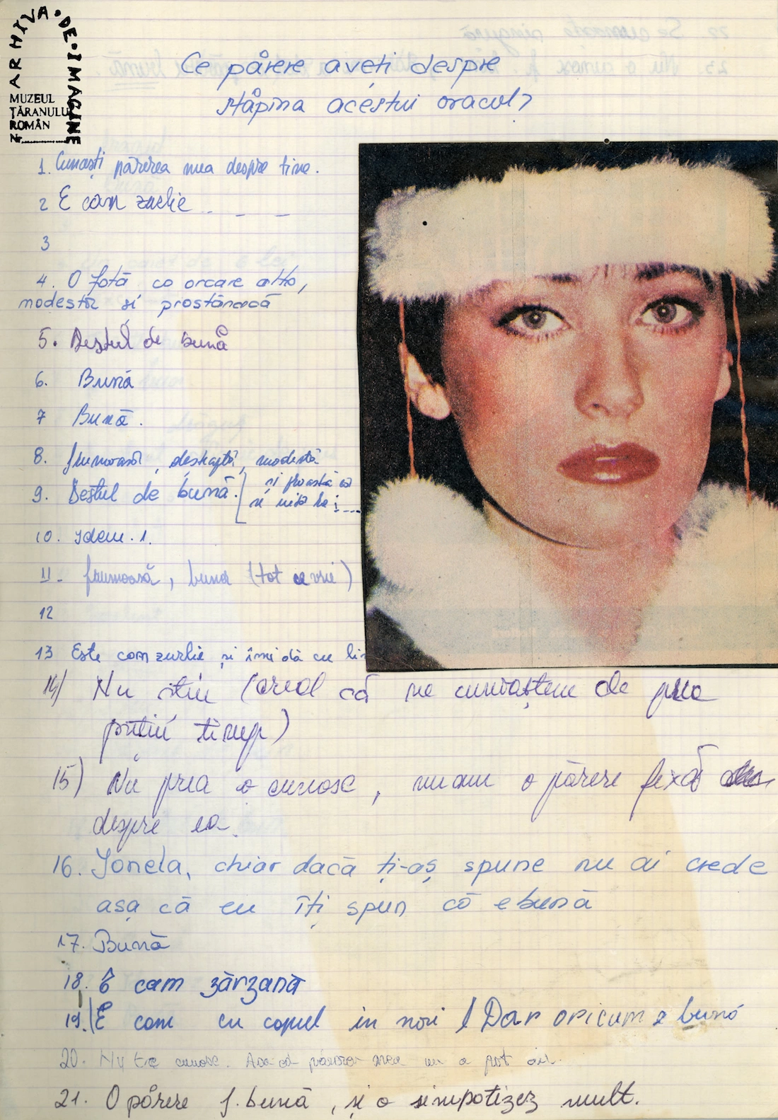 Erau și întrebări despre profesorii preferați, la care se răspundea uneori cu „Niciunul”. O pagină despre „ce materii vă plac?” era goală. Elevii fentau normele oficiale, își construiau cu grijă un teren în care-și luau libertăți. E clar că oracolele circulau pe sub bancă și erau „un fapt cultural de gherilă”, după cum spune Anca. Ciprian Voicilă descrie fenomenul ca pe „o cultură alternativă și cumva privată”.