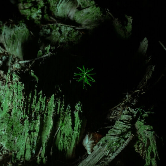 Sunt în pădurea de pe lângă Sâmbăta de Sus, în apropiere de Brașov, și stau cu laptopul în brațe pe un ciot de copac. În căști aud vocea lui Peter Wohlleben, pădurarul care scrie cu empatie despre natură, doar-doar ne va convinge să o lăsăm în pace: „o pădure fără lemn mort e o pădure fără suflet”. Din sufletul de sub mine răsar pui de pini de 2-3 centimetri, frunze uscate, și mai multe feluri de mușchi, pe care mișună sute de insecte.