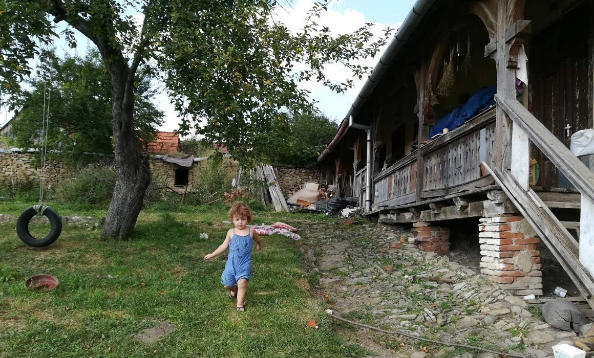 Alina, îmbrăcată lejer și cu un zâmbet senin, traversează curtea cu o carafă de limonadă. „Când am venit aici, era iarnă. Se terminase cu canalizarea, deci aveam apă curentă, WC, confortul minim. Dar nu aveam nimic altceva. Nu aveam internet, TV... Stăteam cu o antenă să prindem un TVR cu purici. A fost groaznic! Din fericire, a durat numai o săptămână până au venit să pună cablu și, odată ce am avut internet, deja s-a schimbat tot”, povestește Alina. Acum este însărcinată cu al doilea copil și nu pare deloc speriată de primejdiile iernii care vin odată cu izolarea în acest sat uitat de lume. Deja a trecut printr-o iarnă în care singurii vizitatori sunt vulpile care dau iama în cotețul găinilor. „Aici nu avem medic. În plus, nu se deszăpezește iarna. Mai vine plugul de la Făgăraș, dar nu ajunge până în sat, pentru că drumul ăsta nu ține de ei.”