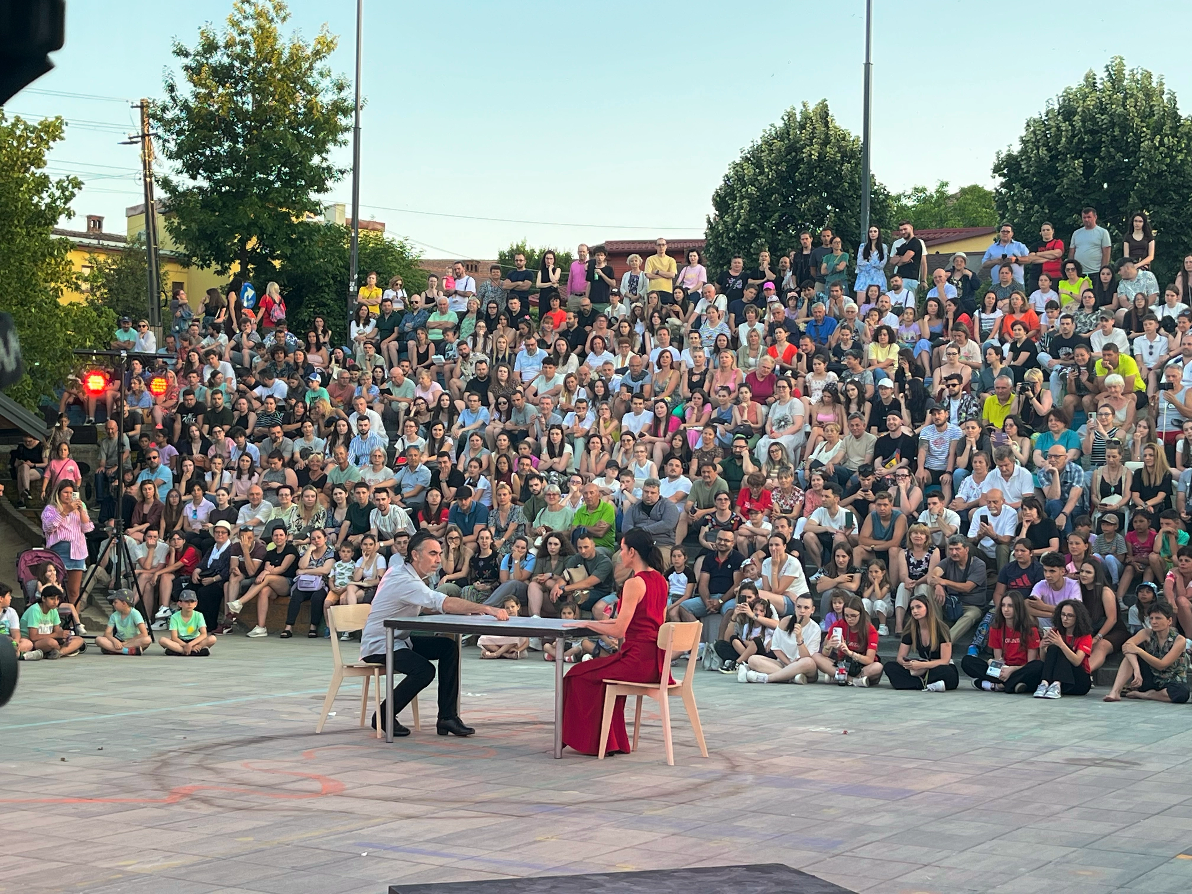 Mișcarea, o combinație de flamenco și contemporan și pantomima dintre doi oameni care țin unul la altul, dar țin și la diferențele dintre ei, avea o oarecare stângăcie. Însă tandrețea și energia lor – un sentiment de complicitate și intimitate cu publicul, și permisiunea să ne amuzăm cu toții la același inside joke – absurditatea relațiilor – au crescut din ce în ce mai mult până la final și au extras o reacție mult mai entuziastă decât mă așteptam în public. Se pare că câteodată doi performeri cu care audiența se poate conecta emoțional în profunzime poate aduce publicul mai aproape decât un concept complex sau execuție tehnică sofisticată, pentru că tribunele din piața Habermann vibrau de entuziasm. După ce s-au stins aplauzele, adulți și mai ales mulți copii s-au strâns în jurul lor să-i felicite, să-i îmbrățișeze și să facă poze împreună.