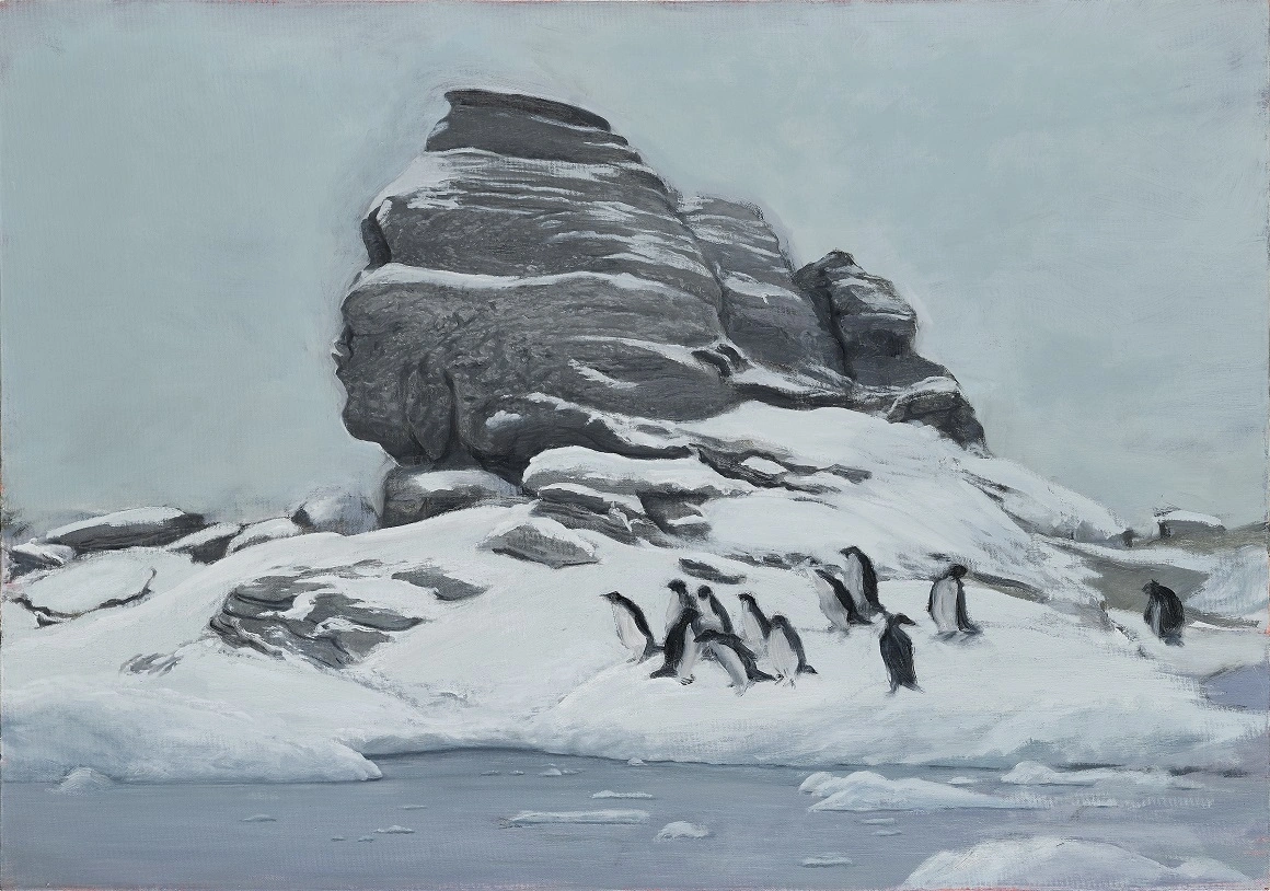 Mai e o serie mică, cu trei lucrări, care-mi place mult. Se numește Rise. Acolo am pornit de la locuri iconice – două de la noi din Bucegi, Sfinxul și Babele, și unul de pe muntele Corcovado din Rio, unde e statuia lui Iisus. Le-am plasat într-o lume post-apocaliptică, unde nivelul mării este inexplicabil de ridicat, cu sute sau chiar mii de metrii. Cele trei monumente au ajuns din vârful muntelui în mare, înconjurate de animale marine, de foci și pinguini. Animalele ocupă aceste spații care aveau o încărcătură simbolică puternică pentru oameni. Acolo e iarăși un revers: e un paradis postuman, mizantrop, în care animalele recolonizează planeta, iar locurile care reprezentau ceva pentru oameni sunt doar niște stânci pe care stau ele.