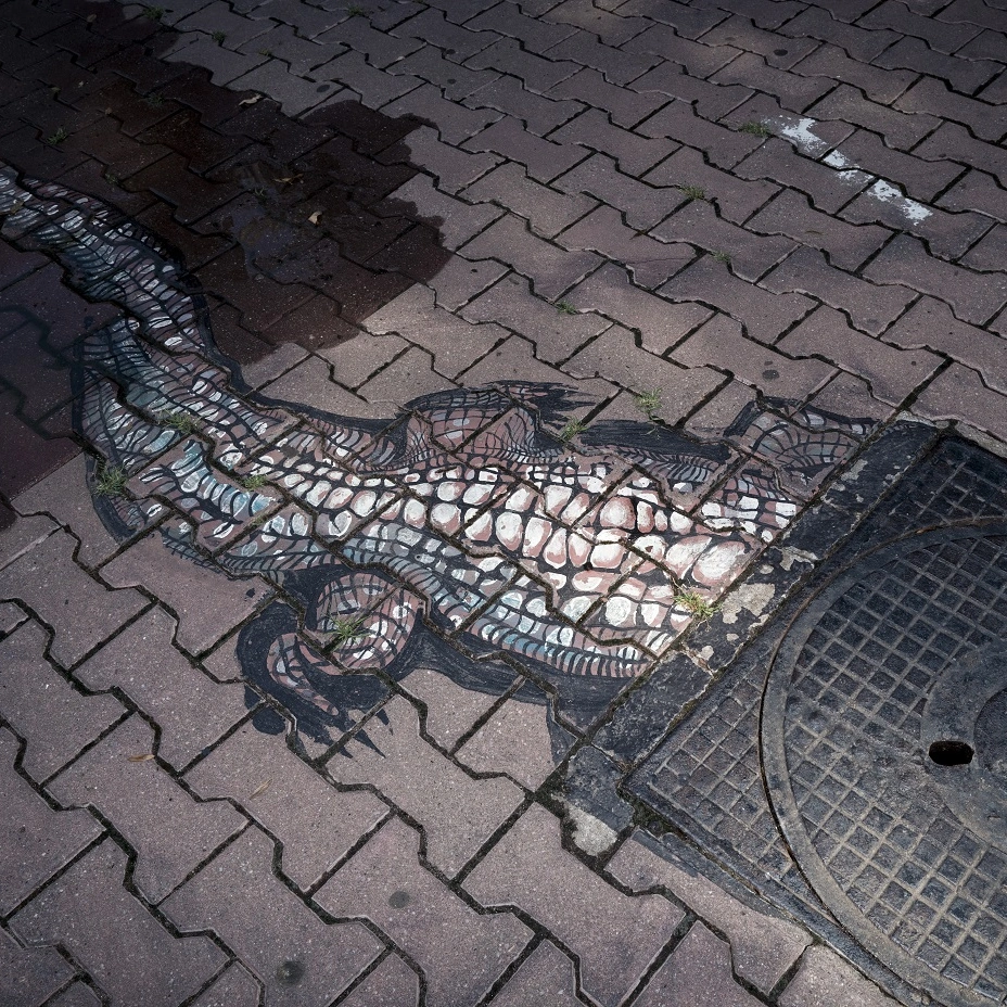 De curând, și-a luat un nou side job – face tururi ghidate cu turiști în București și le vorbește despre istorie și arhitectură. Tot de curând, s-a mutat într-un apartament nou, care îi servește și ca atelier. Când l-am vizitat acolo, în vara asta, nu apucase încă să lucreze în noul spațiu, unde totul era ordonat și îmbrăcat într-un alb predominant. Pe rafturile de pe un perete se distingeau, alături de cărți, un tapir în miniatură, închis într-o cutie de plastic, macheta unei mașini cu multe sute de cai putere și un urs panda miuscul, din ceramică. Detalii discrete ale unor pasiuni vechi.