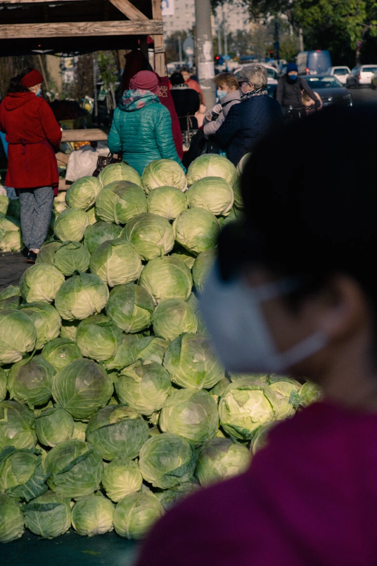 În weekendul dinaintea închiderii piețelor, am dat o tură prin trei cartiere bucureștene, să aflăm cum primesc vestea cei care vin să-și cumpere mâncarea din Piața Obor, Piața Delfinului și Piața Drumul Taberei, dar și comercianții care trăiesc din ce vând la tarabele lor. Am presărat fragmente din aceste discuții printre fotografiile pe care le-am făcut în plină zarvă la Obor, piața emblematică a Bucureștiului. Oborul va rămâne deschis și de azi încolo, după ce Primăria sectorului 2 și administrația pieței au ridicat pereții halei, astfel încât riscul de îmbolnăvire cu Covid să scadă. Rămâne însă în continuare problema celorlalte sute de piețe.