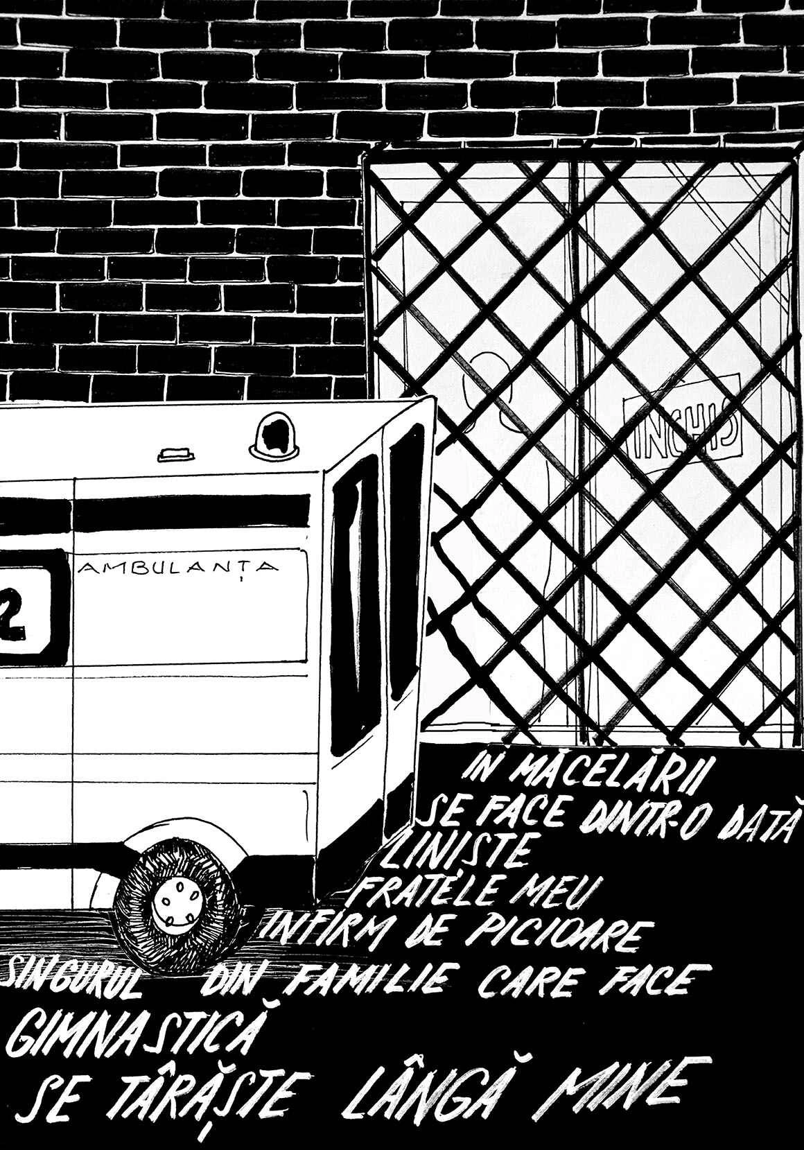 După ce a interpretat vizual pentru Scena9 poeme de Livia Ștefan, Alexandru Mușina, Nina Cassian (& Nina Cassian bis), Leonid Dimov și Simone Weil, Andreea ilustrează acum Despre istorie, un poem al unui autor cunoscut, înainte de toate, pentru piesele sale de teatru. Vișniec, care din 1987 trăiește și lucrează la Paris, a publicat șase volume de versuri și în jur de 50 de piese de teatru. Cel mai nou volum de poeme, La masă cu Marx, l-a publicat în 2011, după o lungă pauză dedicată teatrului.