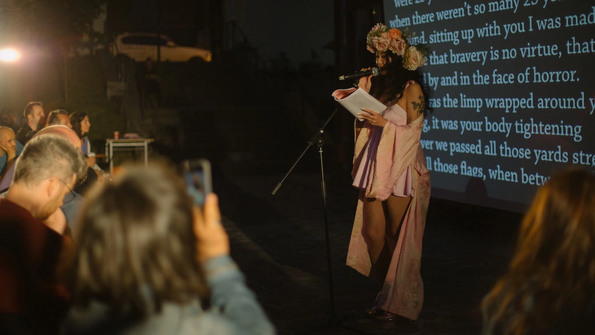 A fost un maraton de lectură de câteva ore desfășurat în curtea Teatrului Gong, unde au citit poeții: Jesica Baciu, Eta Dahlia, Andrei Doboş, Robert G. Elekes, Livia Franchini, Ioana Iacob, Jakobe Mansztajn, Richard Scott, Xiao Yue Shan, Ioana Vintilă, Elena Vlădăreanu, Arno van Vlierberghe, Nadia de Vries şi Charlotte Warsen.