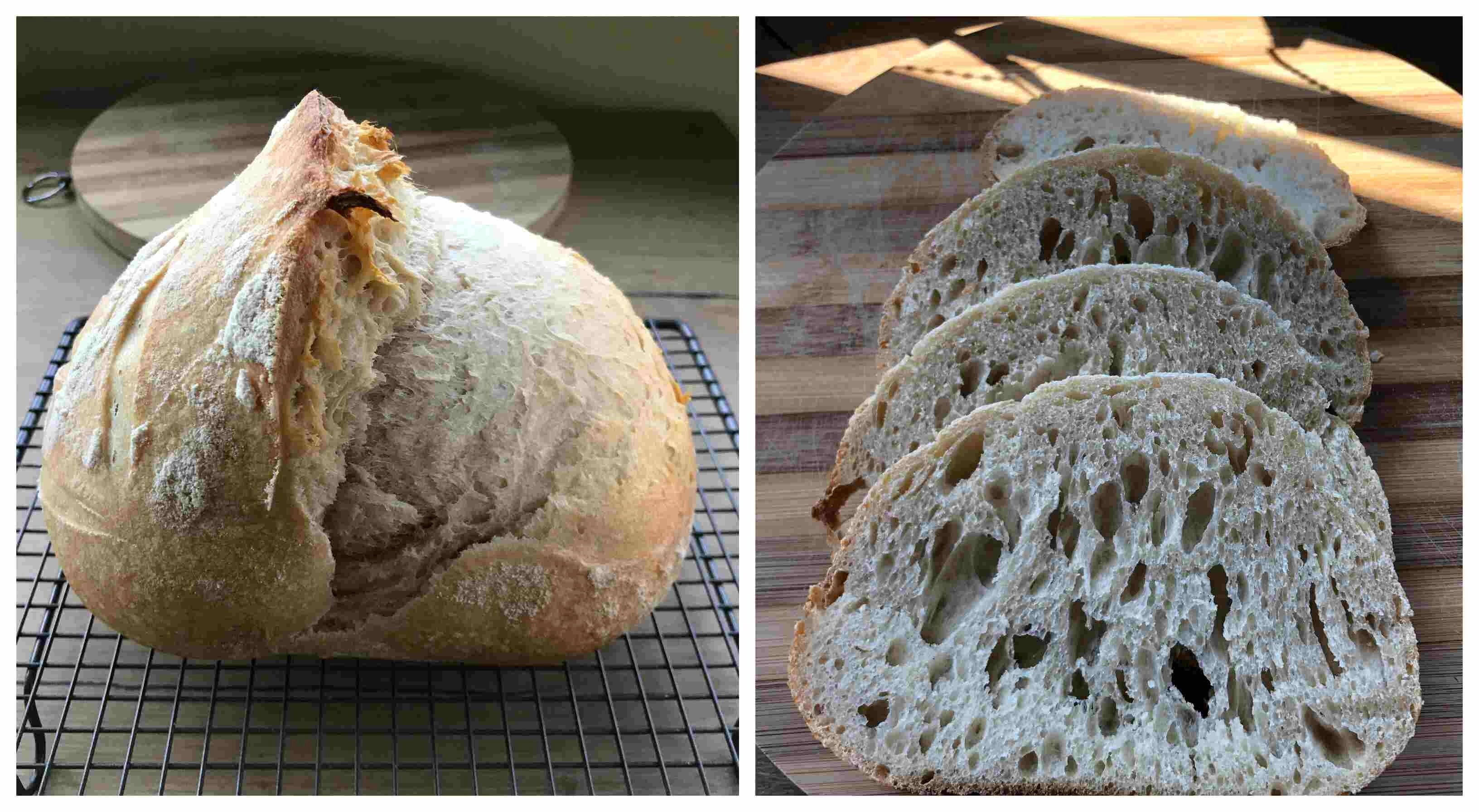 Se pare că dacă sunt găuri în pâine e semn bun, așa trebuie să arate. Doar că ar trebui să fie dispuse regulat în tot miezul. Însă nu vă bateți capul de la început cu cât de aerată e pâinea.