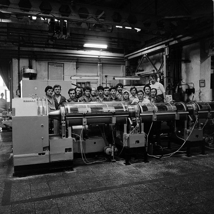 Răzvan și Dénes, mai mult decât orice altceva, se ocupă cu „privitul fotografiilor” și cunosc arhiva mai bine decât oricine altcineva. Cunosc subiectele, cunosc oamenii din imagini și încearcă să înțeleagă, prin diferite coduri de limbaj, cum a funcționat societatea în afara contextului ideologic în care au fost reproduse imaginile. Au deprins un fel de a privi care îi obligă să se uite și la alte lucruri decât ceea ce au în față. Răzvan mi-a dat ca exemplu o imagine din fabrica Unirea, unde muncitorii pozează în spatele unui utilaj. „Era o chestiune de ierarhizare. Într-un fel utilajul era mai important decât ei. Încercăm să vedem tot timpul cum sunt organizați oamenii în imagini și cât din programul ideologic se confirmă în fotografii.”