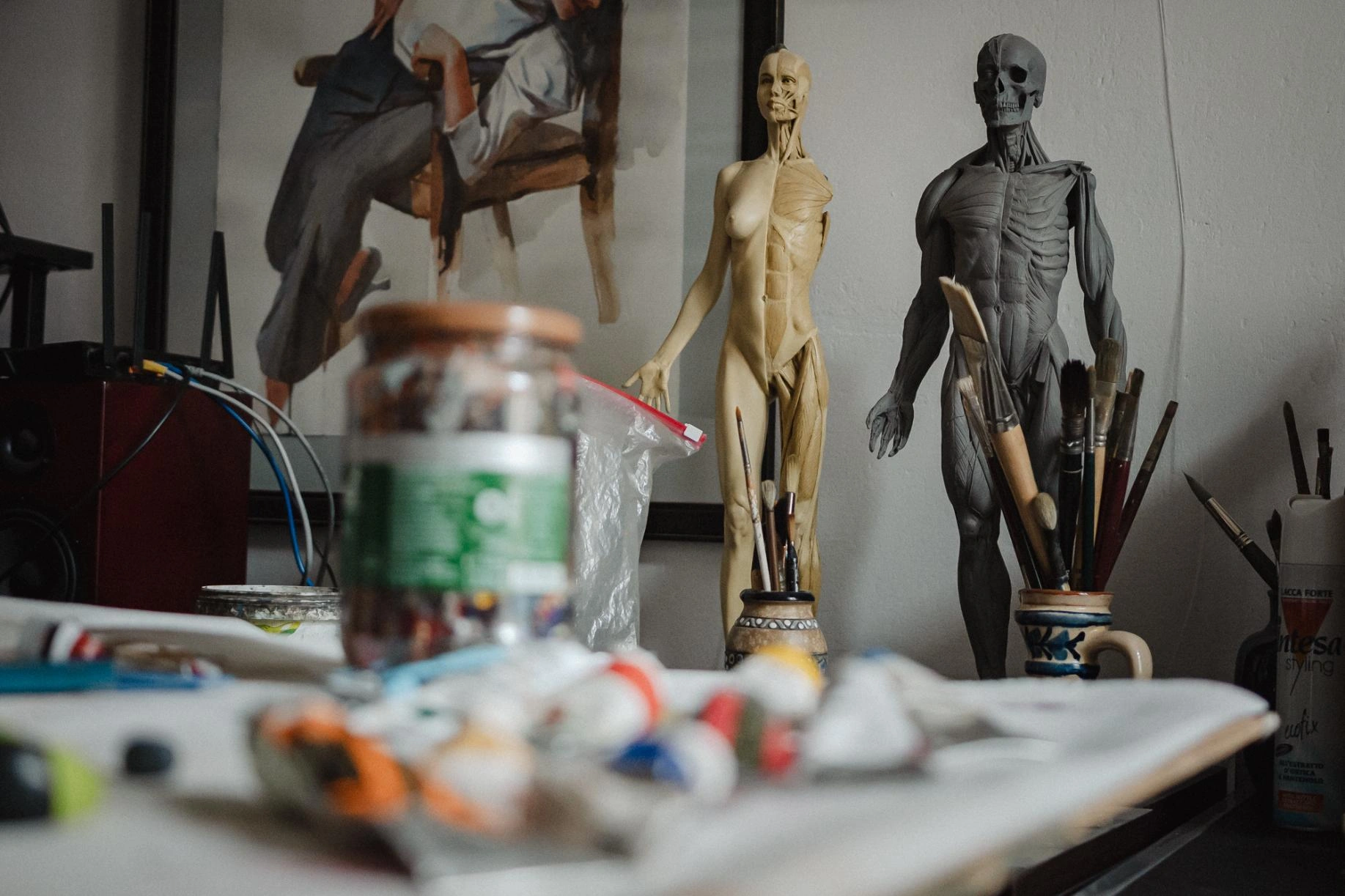 Acum pictez mult în natură, în plein air. Am un prieten cu care merg să pictez prin țară, prin afară. Peisaje rurale, urbane, natură. Lucrez și cu model. Aici, în caz că v-ați întrebat ce e cu scociul ăla de pe jos, e locul unde stă modelul. Sunt sătul de ecrane. Totul e supra digitalizat. Aș vrea să am cât mai multe expoziții de pictură tradițională. Vreau să-mi las amprenta în realitate, nu în digital. Simt că pot să-mi injectez sufletul cu adevărat pe hârtie, pe pânză.