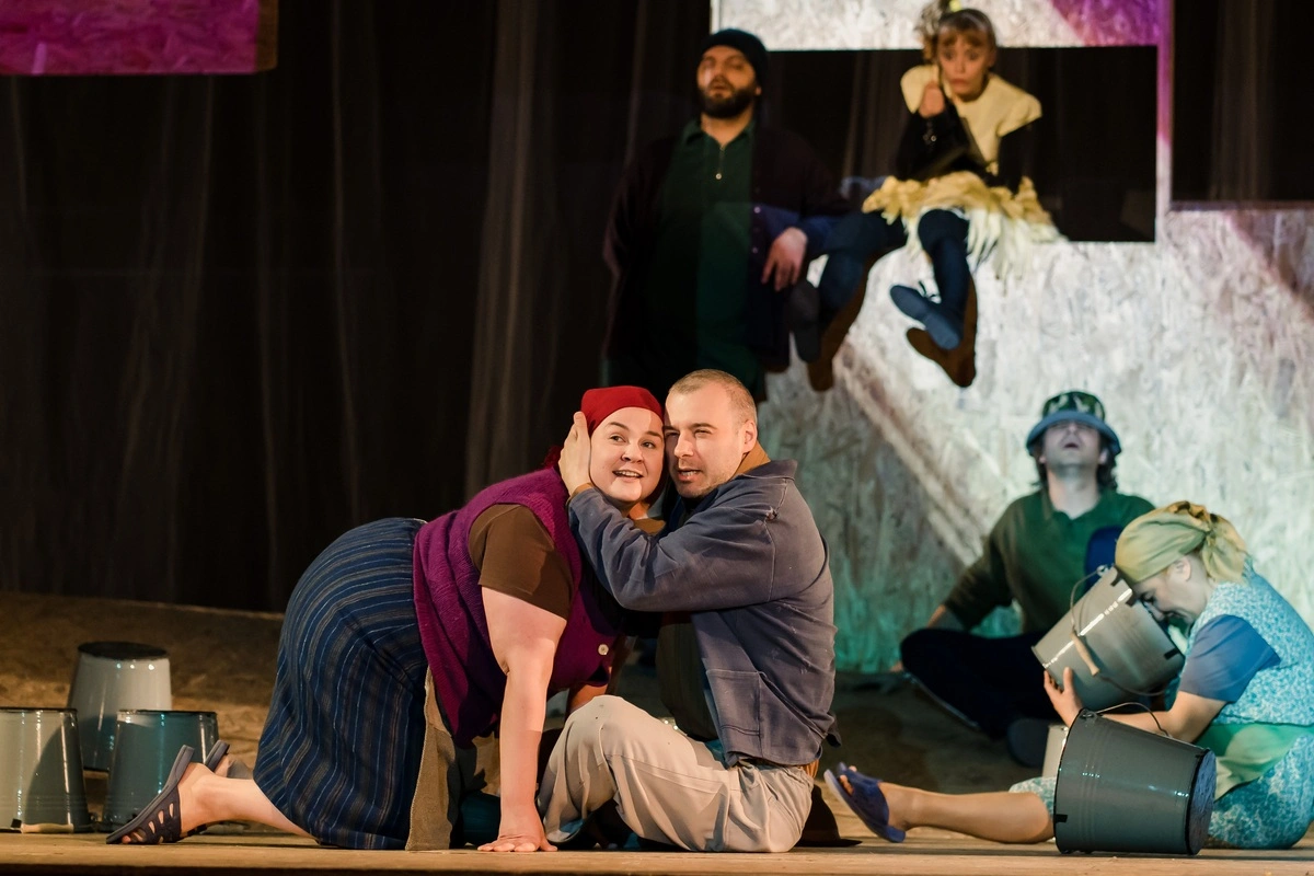 Cu o distribuție de 17 actori sincronizați unii la alții cu exactitate matematică, Regina nopții e o întâlnire a lumii vechi rurale românești cu lumea nouă urbană occidentală. Narat sub formă de poveste de un țap vorbitor care seamănă cu Gandalf din Stăpânul Inelelor, cu umor care se revarsă peste margini, spectacolul Letei Popescu are ca pretext reunirea familiei pentru a-i fi la capul lui Grigore, bătrânul clanului, care zice că e pe moarte, dar ajunge în cele din urmă să se… (spoiler alert) însoare. Însă, de fapt, piesa e centrată în jurul protagonistei Valeria, fiica lui Grigore, numită și mamaia de o mare parte dintre personaje, jucată magistral de Oana Mogoș, care a și câștigat premiul UNITER pentru acest rol. Valeria nu are carieră, ca fiica ei care își reneagă originile și s-a mutat la oraș, ne spune ea la un moment dat, într-unul dintre conflictele constante dintre cele două, însă ea e cea care ține familia și comunitatea unită și mișcă gospodăria — nu e nuntă la care să nu fie invitată, nu e mort pe care să nu-l spele. Deși piesa întărește unele stereotipuri de gen — cum ar fi incapacitatea soțului Valeriei, Lămbiță, de a-i spune că o iubește, pretext pentru a fi tachinat de soție — acestea sunt deconstruite apoi, culminând, de exemplu, cu discursul nepotului Norbert în care băiatul își explică refuzul general de a se căsători din cauza incapacității sale de a-și identifica și procesa emoțiile, care apoi i se revarsă violent. Dedicată la fiecare reprezentare unei bunici a unuia dintre membrii echipei, piesa ar merita montată — și cred că ar prinde și la public — în toate localitățile din România și Republica Moldova. Pentru ca apoi să fie trimisă și în turneu în diaspora. Eu, una, am râs peste măsură și am și plâns singura dată la această ediție a festivalului, alături de alți spectatori care se smiorcăiau lângă mine la final.