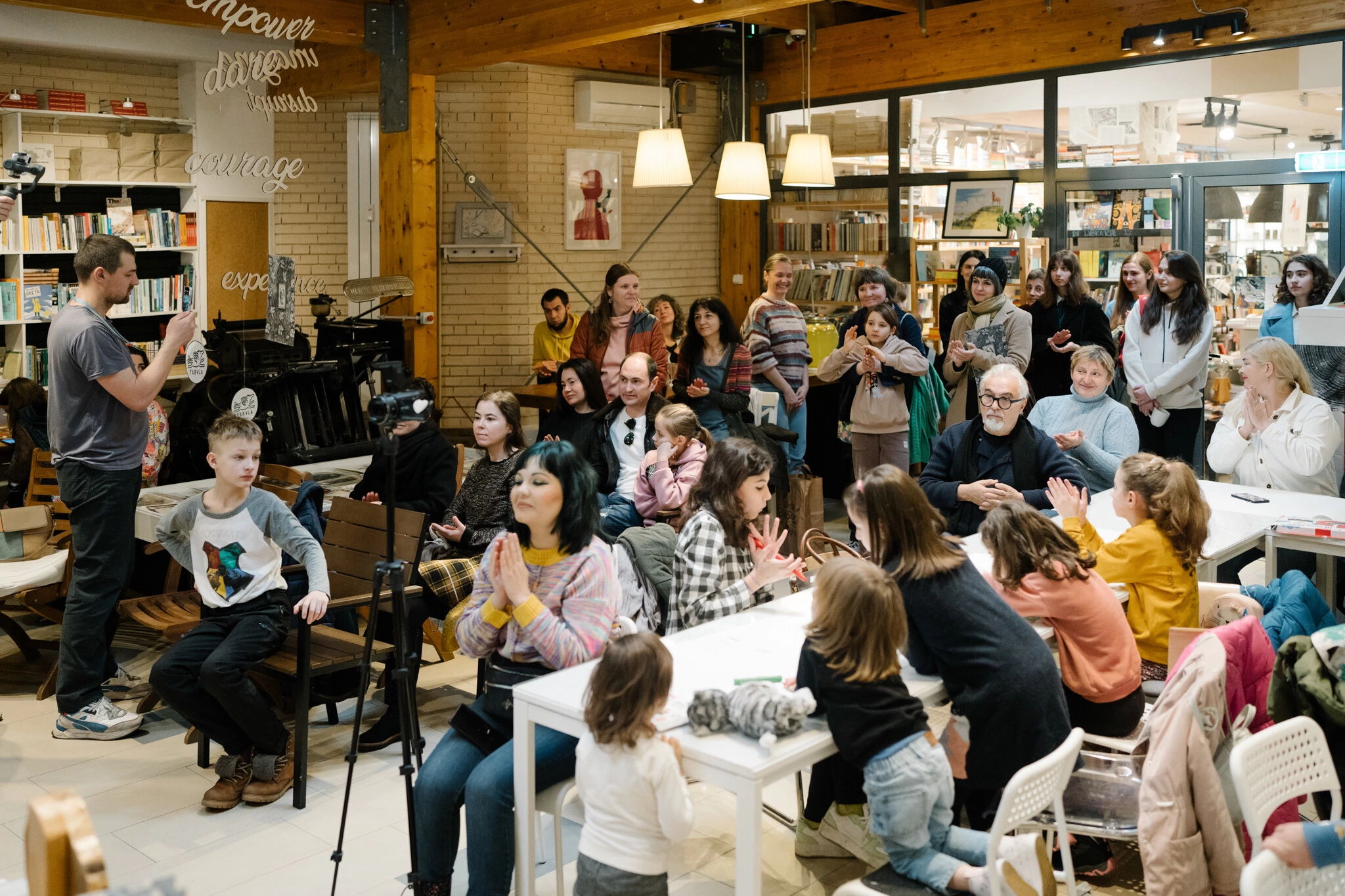 Lansarea poveștii Olgăi s-a făcut cu sala plină, într-o zi friguroasă pe dinafară și emoționantă pe dinăuntru. Amfiteatrul Seneca Anticafe a primit haine noi, recreate după ilustrațiile delicate ale artistei și continuate de copiii, în mare parte ucraineni, prezenți la lansare. În timp ce oamenii mari au ales cuvinte cu grijă, pentru că în realitate încă nu știm cum să-i vorbim unei persoane care fuge de război, copiii au pus cu dezinvoltură în desen familii de șoareci, iepuri, arici, întocmai ca în desenele artistei.