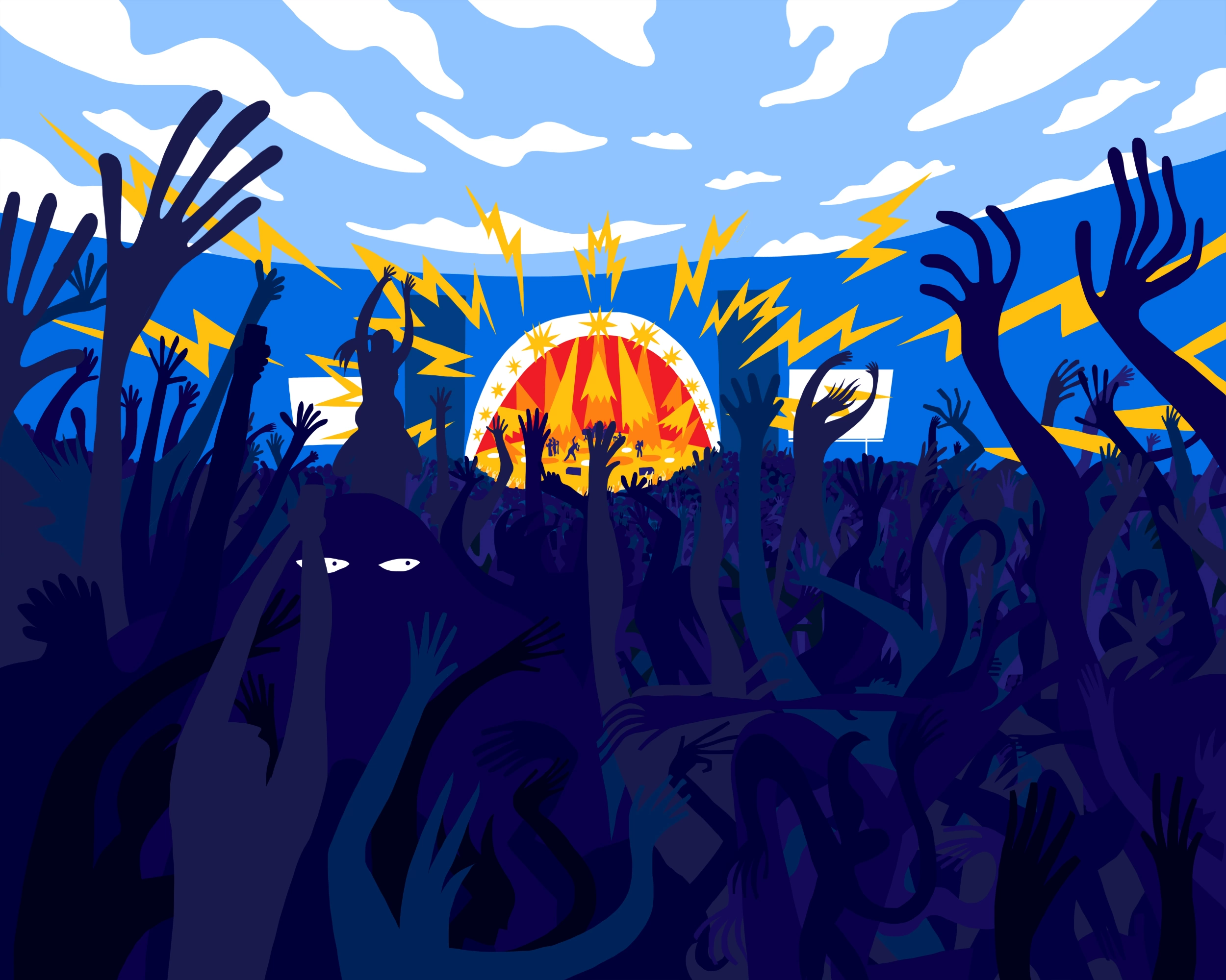 Poetul cu versuri absconse și melodii eterice e o prezență cât se poate de terestră. Masiv, între două vârste, cu o șapcă de baseball îndesată americănește pe cap. Concretețea prezenței lui și zecile de mii de voci care cântă „And I told you to be patient/ And I told you to be fine/ And I told you to be balanced/ And I told you to be kind”, fiecare pentru sine și toți într-o singură voce, mă ajută să mă ancorez în spațiu și timp. Sunt, totuși, la un festival. E cumva un carnaval contemporan, dar nu tocmai. Festivalul, revendicat de la noțiunea pre-creștină a carnavalului, care legitimează excesul și abundența, e un construct vulnerabil la atacuri din partea celor care vor să răstoarne dominația occidentului prin violență.