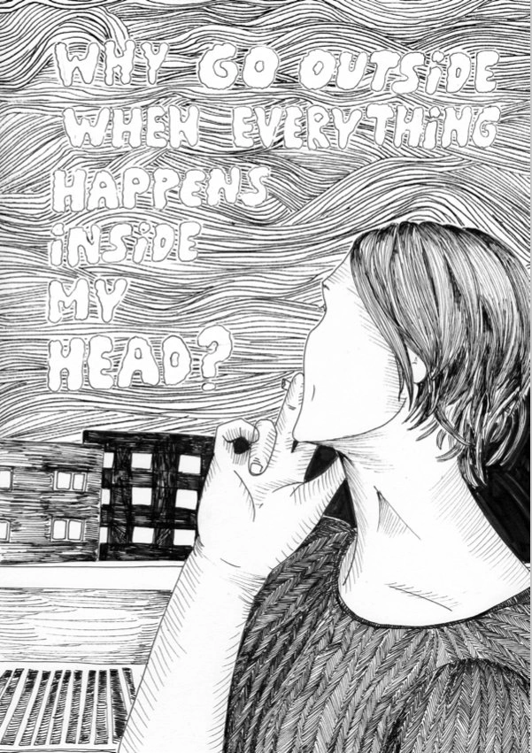 După ce ne-am văzut prima dată, îi verific contul de Instagram în fiecare zi. Nu știu cum face, dar găsesc bucăți din mine în desenele ei. „Chiar vreau timp de un an de zile să postez un desen pe zi. Indiferent de ce am de făcut în ziua aia. Îmi vin idei, pe unele mi le notez în telefon. De fapt, îmi vin niște gânduri, niște fraze, și dup-aia le desenez. Pentru mine, e un exercițiu bun... să învăț să mă expun din ce în ce mai curajos. Asta vrea să învăț să fac. Gândurile astea, fricile, lucrurile care nu-s așa cool, patetice, îhh, repetabilitatea... Dacă vreau să fac asta, și vreau, e important să devină din ce în ce mai autentic tot demersul ăsta. Și dacă pentru mine acum autentic înseamnă să vorbesc despre lucrurile foarte personale, atunci asta fac.”