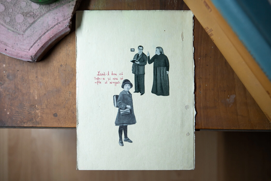 În garsoniera ei dintr-un cartier al Bucureștiului, ne uităm împreună la pozele cu familia ei, care stau într-un plic special separat de cele anonime, aduse de la anticariat ca să apară în colaje sau exponate pe pereți. Pozele color sunt făcute de fratele mamei, care avea un aparat digital. Preț de câteva minute, îmi spune cu precizie povestea din spatele fiecărui cadru. „Știi cine ești din familie. Mi-a plăcut să iau câte puțin din toți”, râde Beatrice.