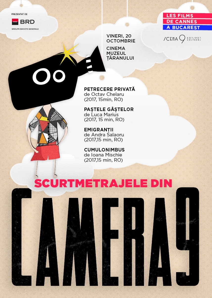 Anul trecut, am organizat împreună cu Les Films de Cannes à Bucarest un concurs de proiecte de scurtmetraj pentru studenții facultăților de film din România. Juriul Camera 9, alcătuit din Cristian Mungiu, Flavia Popa, Tudor Reu și Luiza Vasiliu, a ales patru proiecte câștigătoare din 39 de înscrieri. Cei patru au primit consultanță legată de scenariu de la Cristian Mungiu, sfaturi despre producție de la Tudor Reu și ajutor la editare de la Mircea Olteanu.